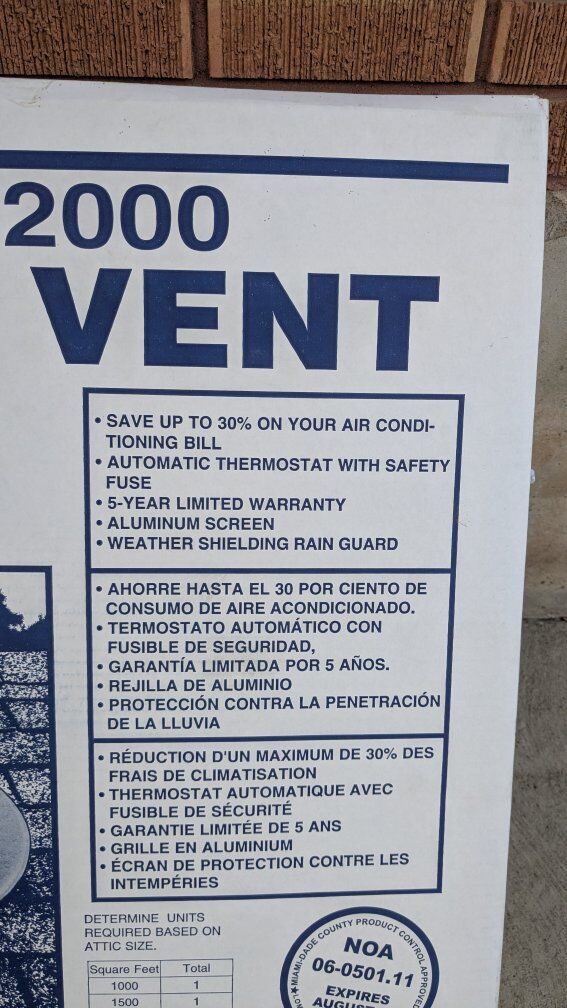 This is unopened. come check it out if interested. Box reads that it's adequate for 1,000 square foot attic.