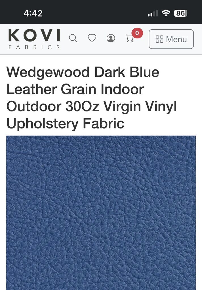 premium quality upholstery fabric by KOVI Fabrics features Leather Grain, Plain, Solid pattern and Blue as its colors. It is a Vinyl, Bacteria, Mildew Resistant, Fade Resistant, Performance Grade, Pet Friendly, Stain Resistant, Weather Resistant type of upholstery fabric