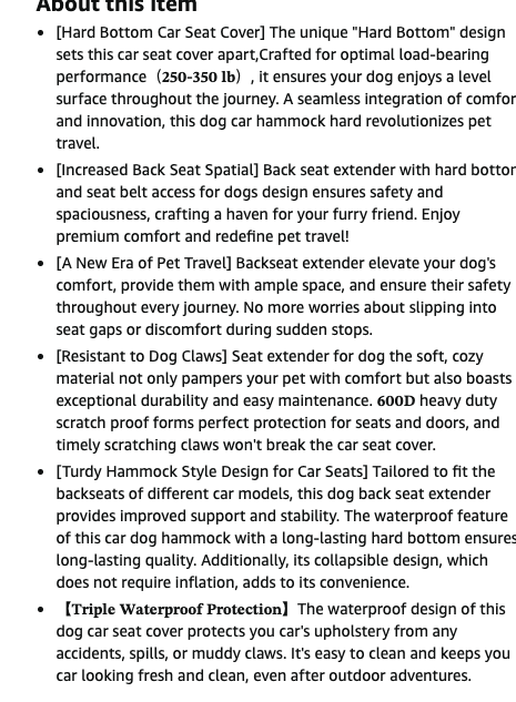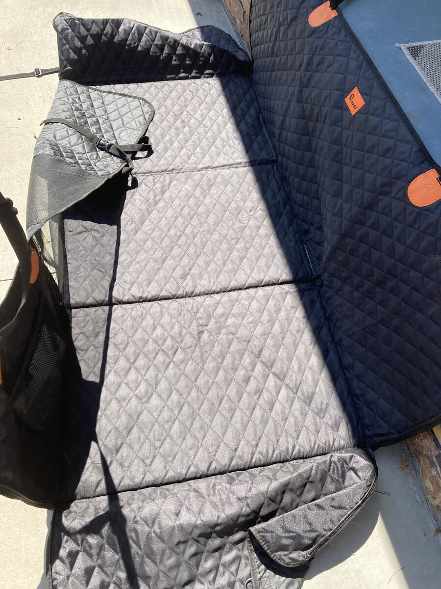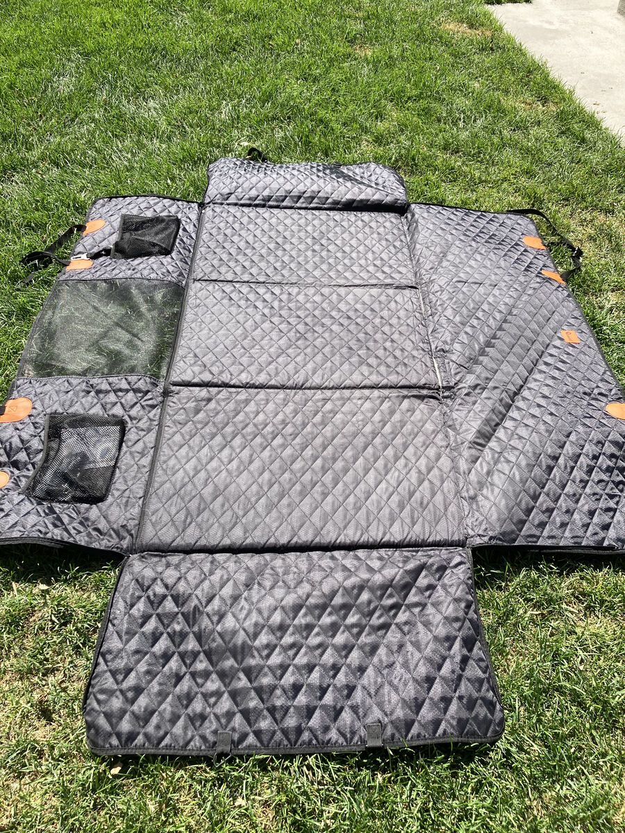 Hard bottomed Dog car seat cover with extender is perfect for creating more room for your pet to lay down, especially when traveling. This one is 28 inches deep and 56 inches long, so would fit a 4 door larger SUV or Truck. It's very sturdy and waterproof, See last photo for all the details.