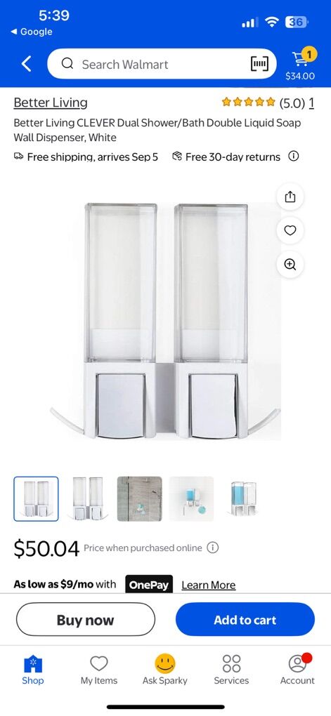 VenmoNew in the box Better Living shower dispenser Clever 2. Neat, convenient organizer. Helps to keep your shower cleaner. No tools required. Lifetime pump warranty. Two accessory hooks on each side. Easy to mount anywhere with waterproof, double-sided tape and silicone adhesive which is included. Also easy to remove if necessary. Hold 17 ounces on each chamber. Clean smoke free home. Cash or Venmo. Pick up in Alpine.
