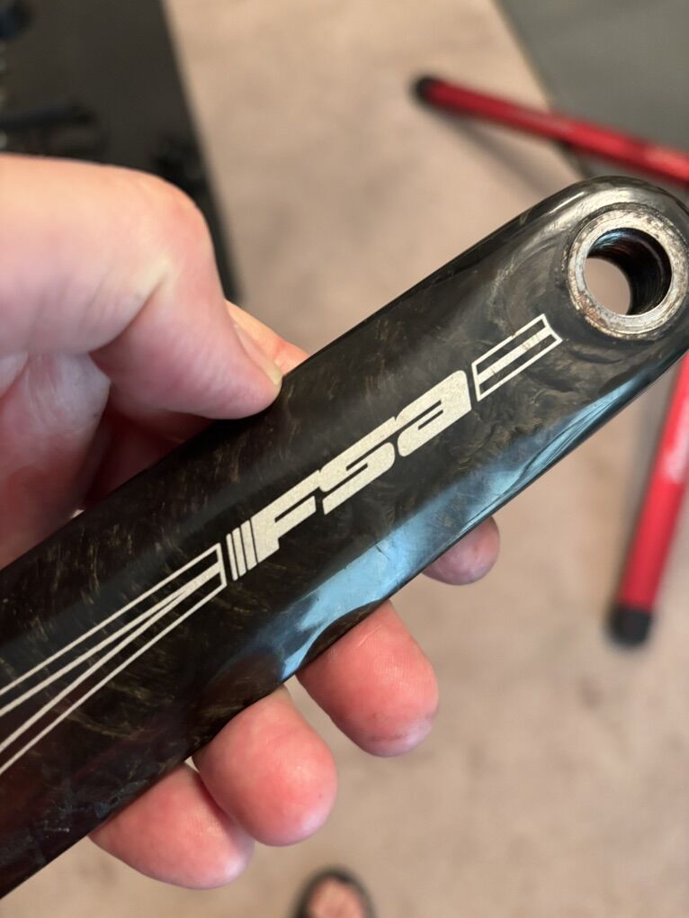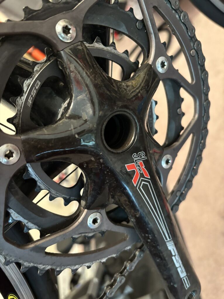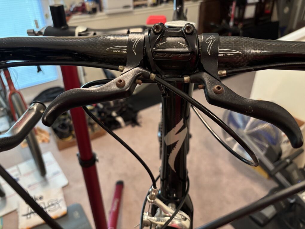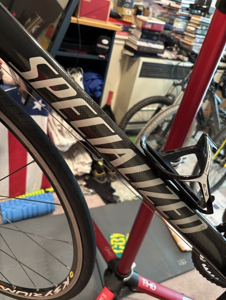 The story: I had this Roubaix on my indoor trainer for just over 1K miles (2337 outdoor miles prior). The bottom bracket started making noise and eventually the non-drive crank arm fell off (after it was tightened by a bike mechanic!). Not sure if the bottom bracket is salvageable (probably) OR if the surrounding carbon on the frame is damaged (it seems it might be but I could be wrong) but you’re welcome to sort all of that out for yourself (my pricing does NOT figure the main carbon, the carbon fork or the frame itself or even the bottom bracket into the mix so keep that in mind). In spite of all of the foregoing there are some really nice parts on this bike!