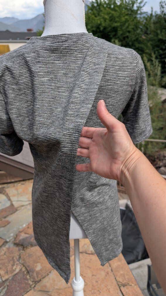 The black and gray shirt is in great condition and opens on the back.