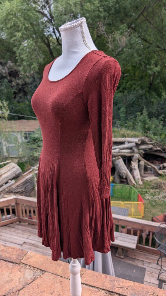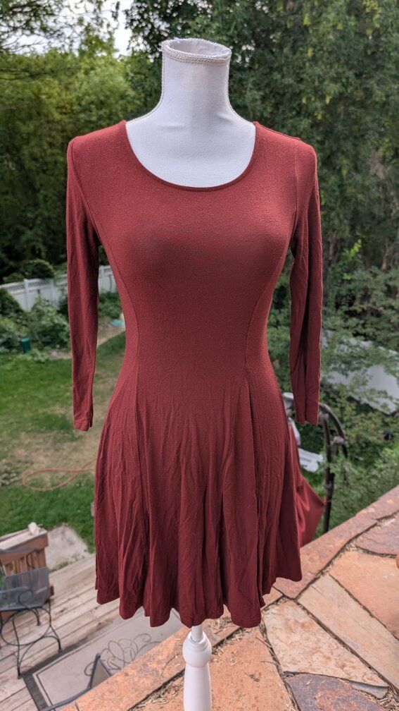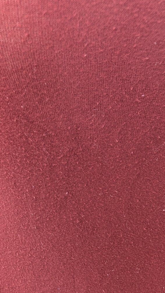 The long sleeve maroon dress is pilling, there are no holes or marks, but it will need some sort of fuzz remover.