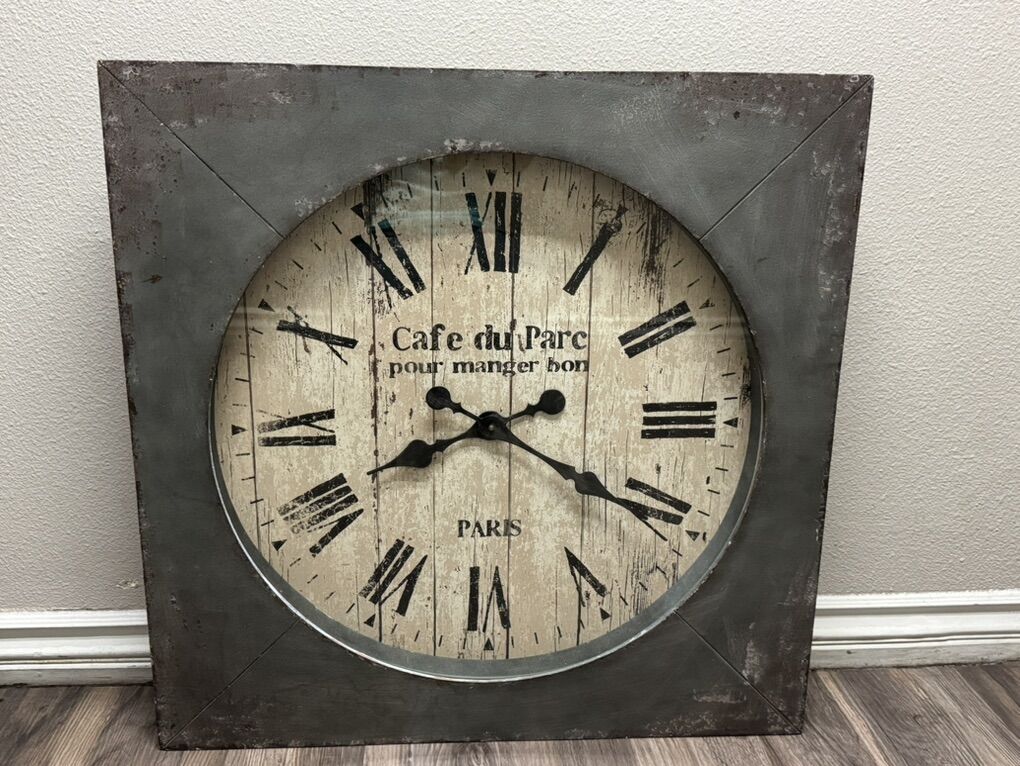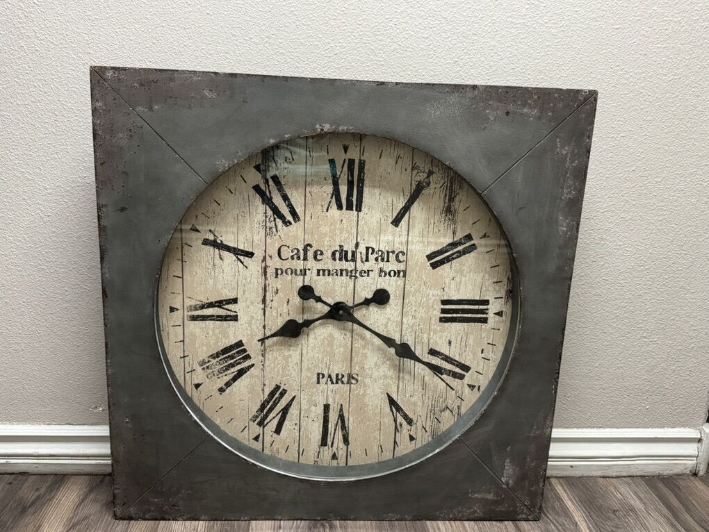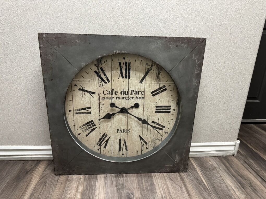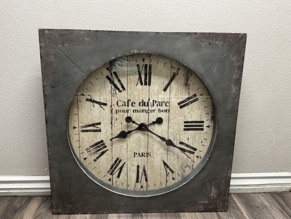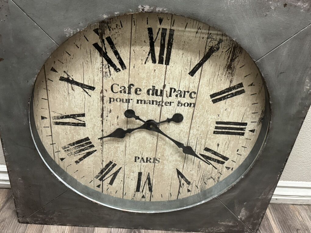 $1860!! Restoration Hardware Large Iron Cafe de Paris 36782 Gray Metal Wall Clock Rare. Description Excellent quality, this rare large Iron gray metal Restoration Hardware wall clock cafe de Paris, industrial fashion style made of metal will make your room simply irresistible!! Square watch from Restoration Hardware absolutely in new condition and heavy, its original was price $1860 brought from Canada, unsurpassed style, better than in the photos, you will be satisfied, the price is firm!! My loose ,your gain! Size : D 4 x H 33x W 33 One of a kind!! Authentic. and incredible stunning looking!!!!!!!New condition!