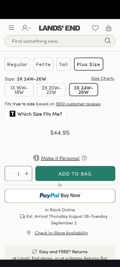 ZelleLands End Plus Size 3 XL Soft cotton V Neck top - NWOT