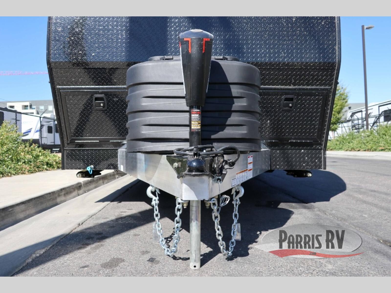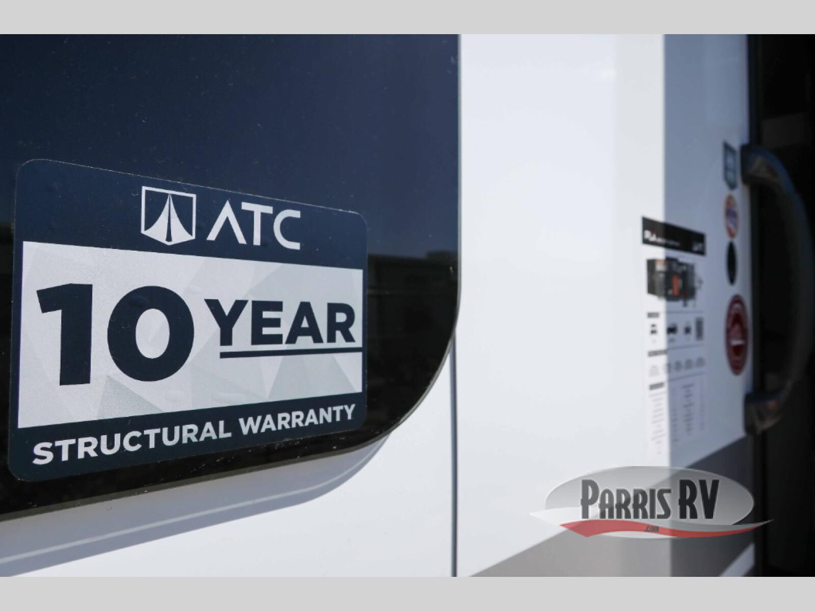 With any PLA 450 toy hauler travel trailer by ATC Trailers, you will enjoy lightweight towing and a configurable garage space for your toys, gear, and more! The all-aluminum and composite construction features no wood so you won't have to worry about rot, and the All-Weather Protection Package means you can extend your camping season. There is a 200-watt solar panel, a 100-watt inverter, and 120V/USB outlets to keep your adventures going. Outside, you'll find storage for your gear, a power awning with a light strip, sleek frameless dual pane windows, and more convenient features. The interior is just as accommodating with aluminum cabinets, dimmable can ceiling lights, configurable furniture track system, and solid surface countertops!