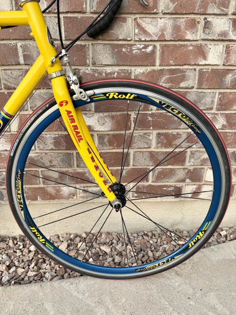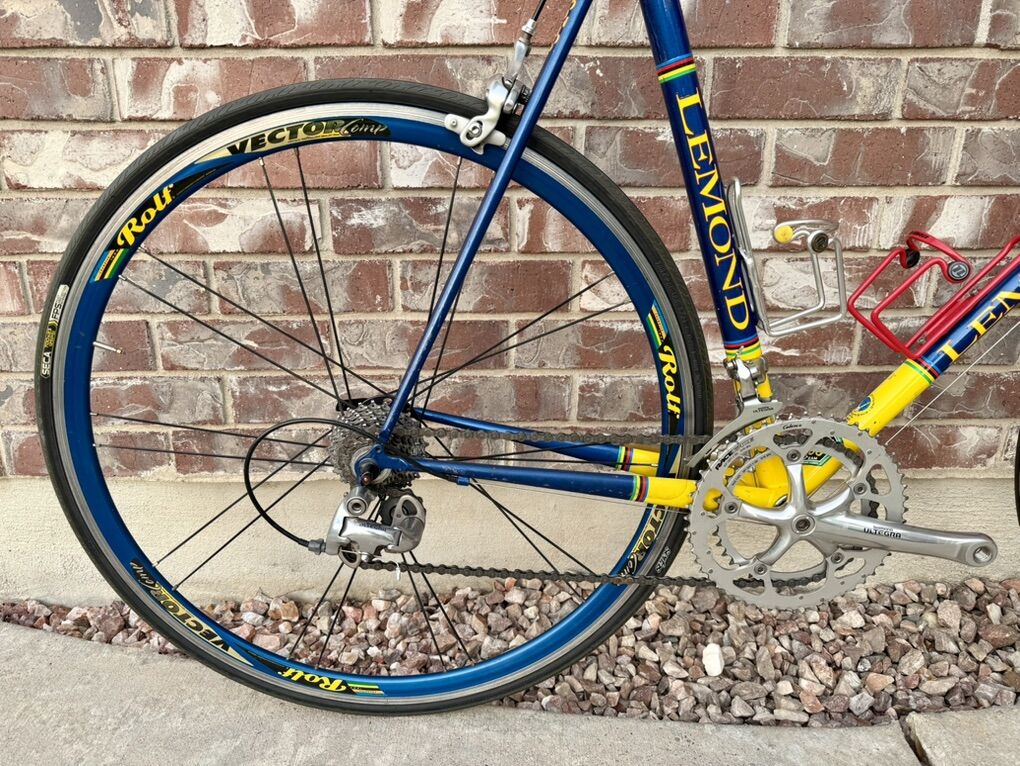 -Full specs are online. -Carbon fork -Reynolds 853 chromoly steel frame. -Brand new bar wrap. -All brand new cables and housing. -Full Shimano Ultegra group set. -Rolf Vector Comp wheels with hubs. -2 bottle cages included. -I have the original wheel reflectors if that interests you.
