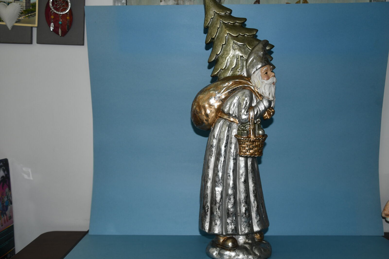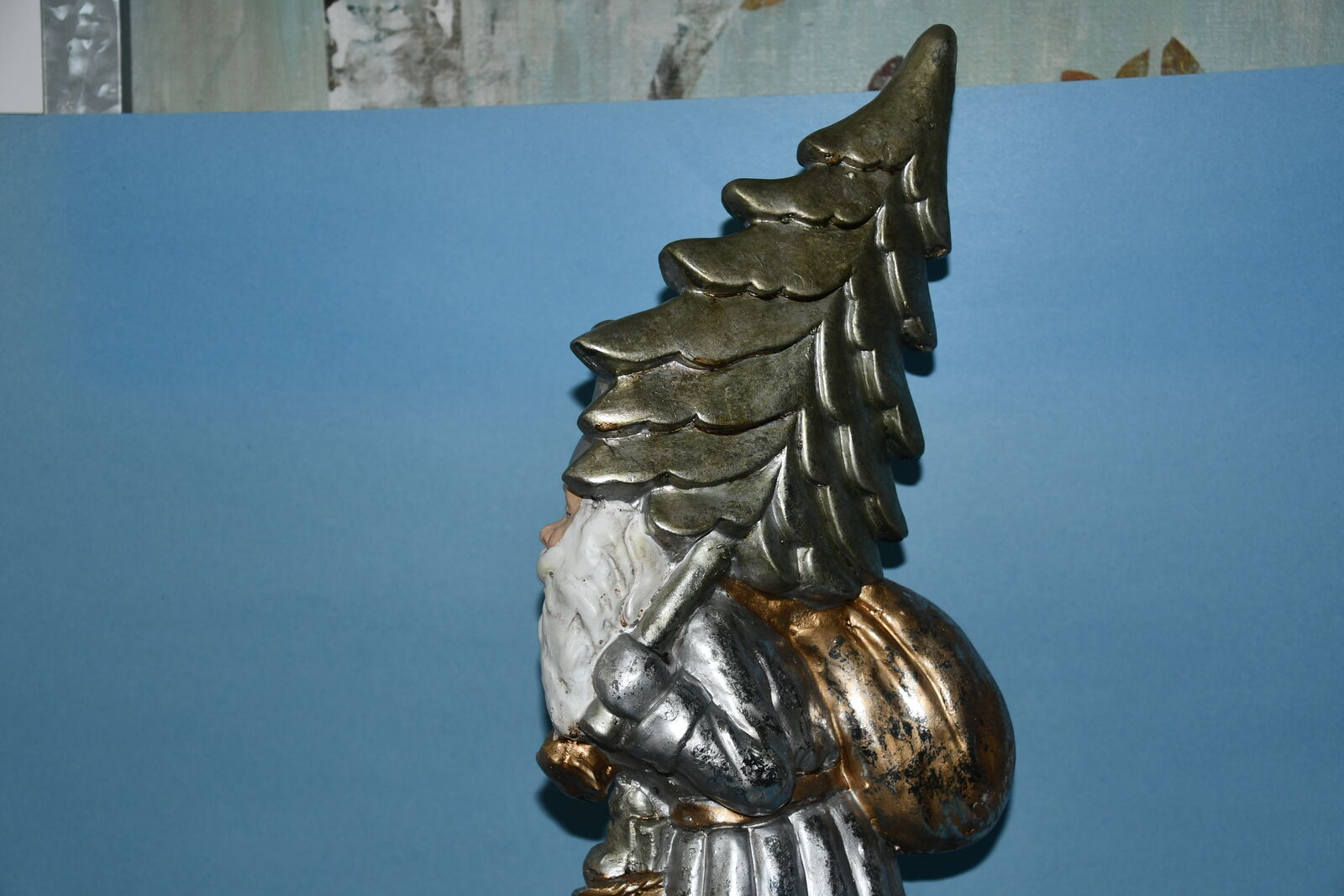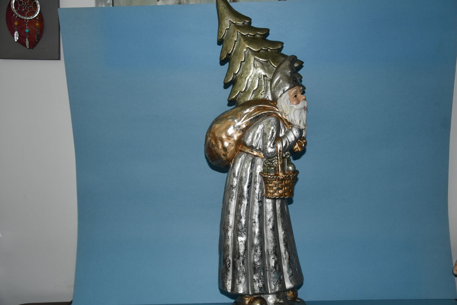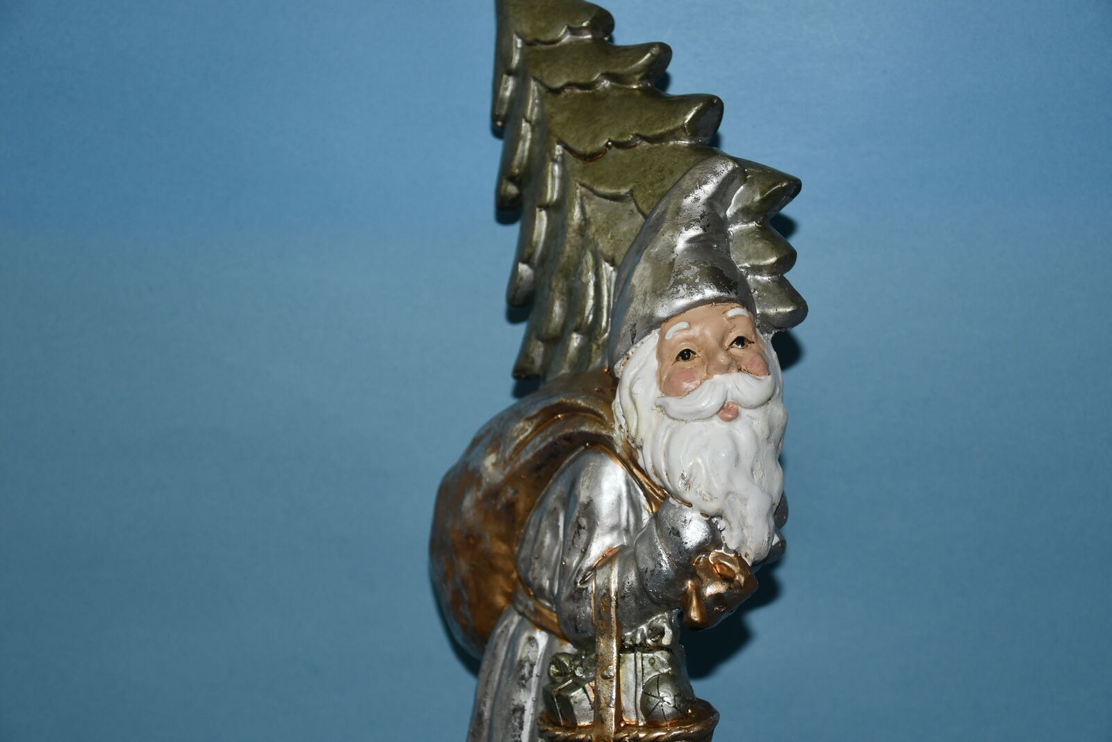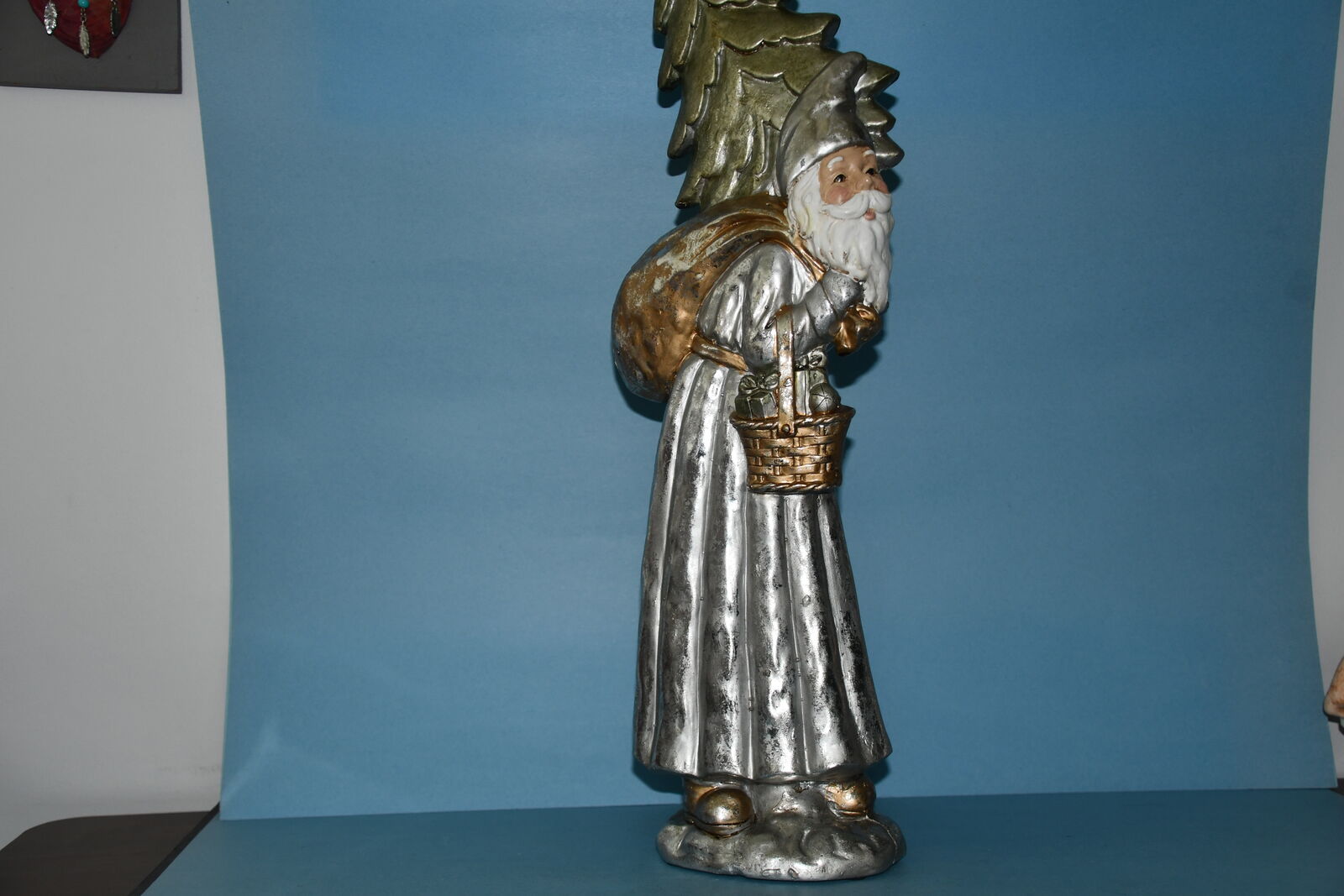 This LARGE 23" "SANTA with TREE & BAG" is from a smoke free home. It is in GOLD & SILVER TONES. It is HEAVY & QUALITY! There are NO CHIPS! Our home is smoke free. Questions??? Please ask. We are located in Plain City. Cash only please.