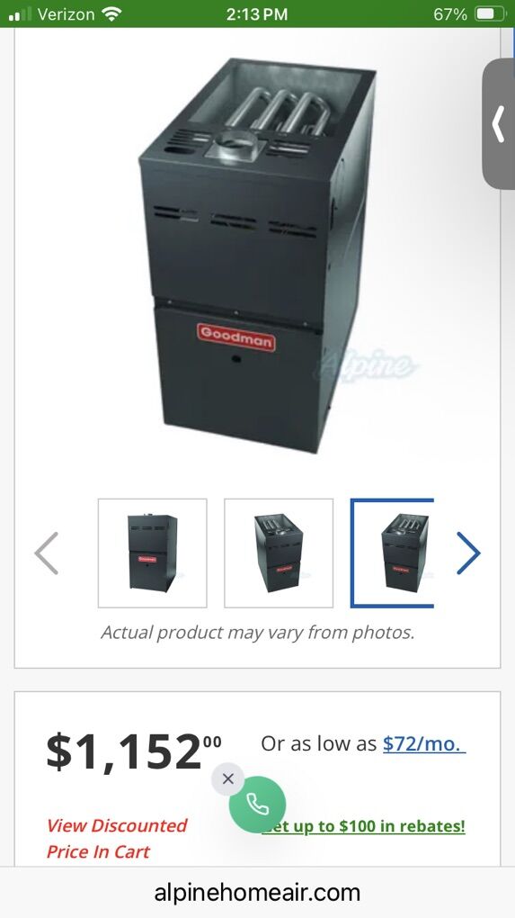 Venmo40,000 BTU Furnace, 80% Efficiency, Single-Stage Burner, 1200 CFM Multi-Speed Blower, Upflow/Horizontal Flow Application