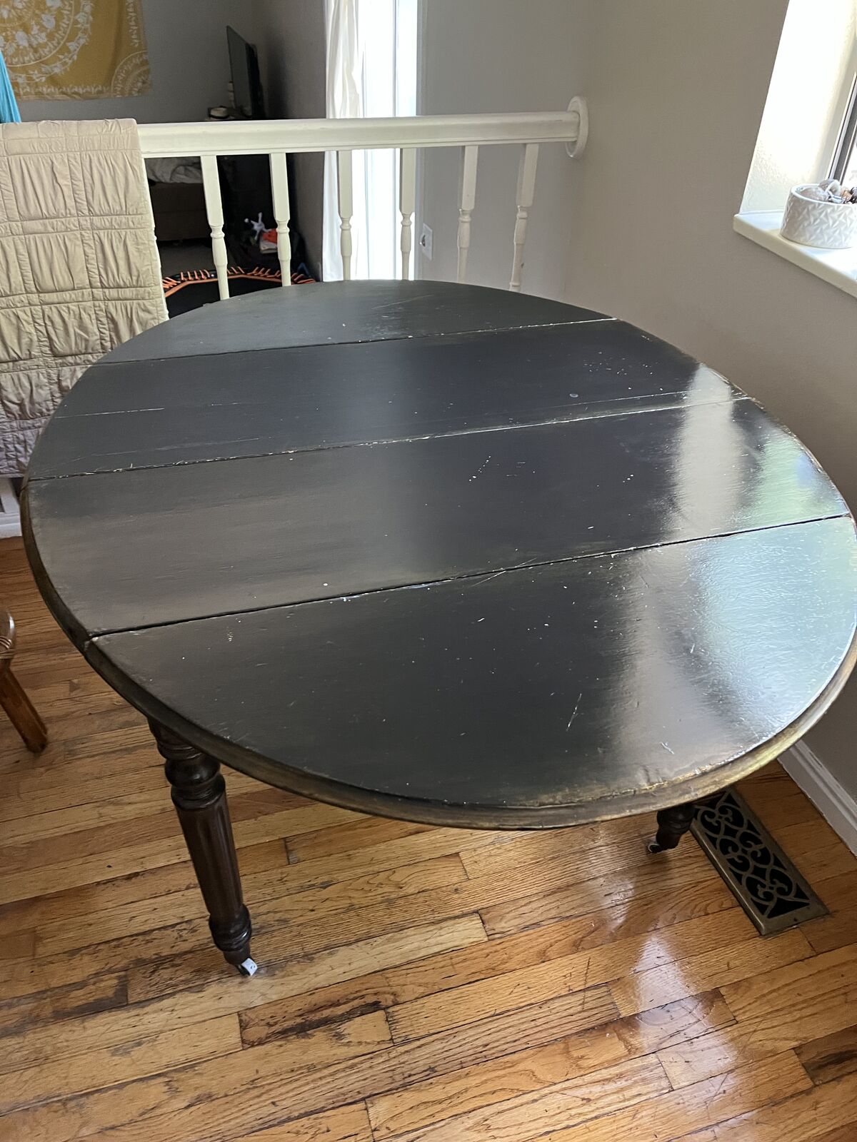 VenmoNot perfect, but still lovely. Has wheels, and drop leaves work perfectly. Does not have a leaf to extend the length. Measures 50 inches long x 42 wide when extended. Check out my other listings. Call or text. Pick up in Springville.