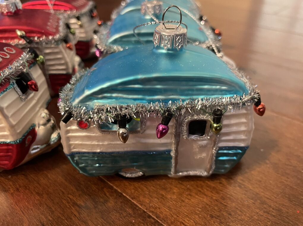 I have 11 new vintage style glass ornaments. They are vintage style campers decorated with Christmas lights around the tops. There are 4 yellowish orange, 3 red and 4 blue. They are 3 1/4 inches tall and 4 inches long. The price tags show they were originally $13.95 each (total $153.45 plus tax). I’m asking $40 for all of them together. I can also split them up for $4 each. See my other ads for jewelry, artwork, home decor and more.