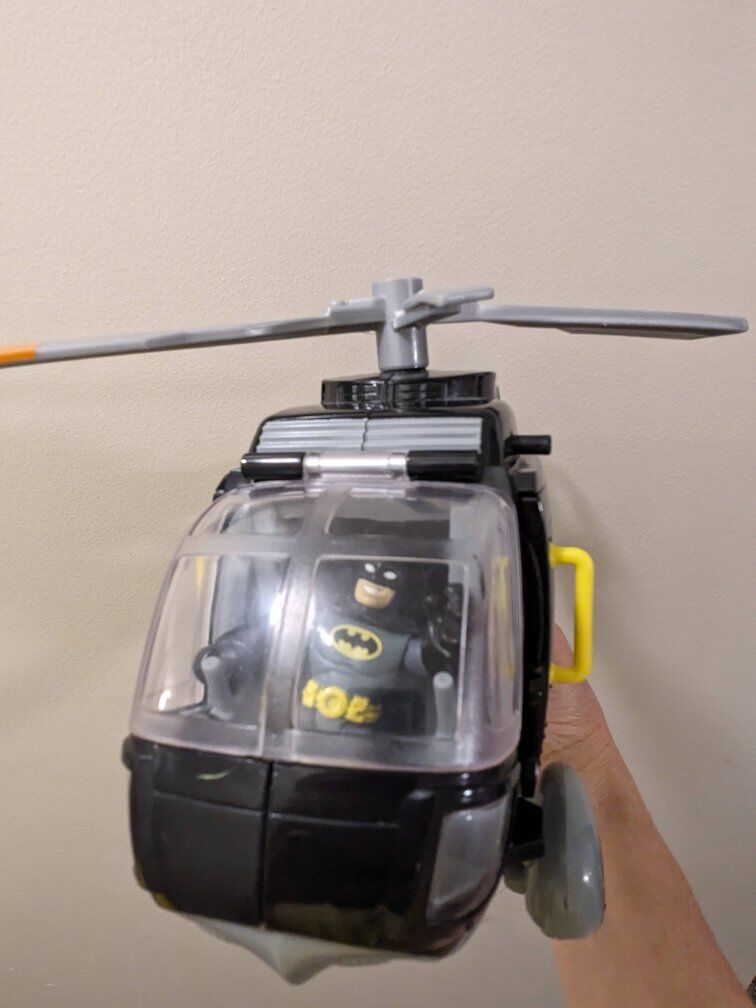 Batman Helicopter: $10 This is Batman Helicopter that your pump by hand. No batteries required, you just basically "shoot it like a gun" to get it to spin the propellers. Little Batman figurine comes with it!