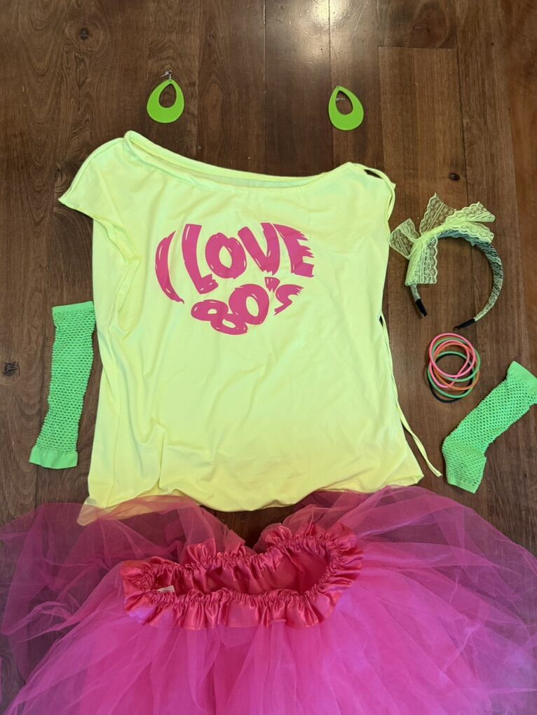 Adult I love the 80’s costume size M/L jelly bracelets leg warmers