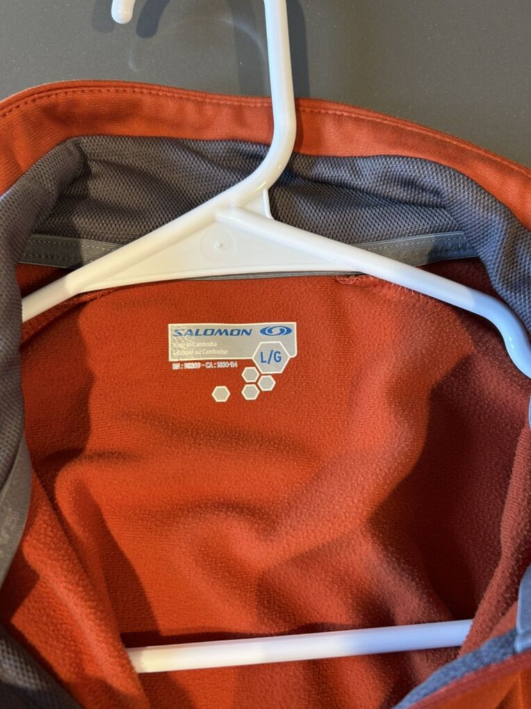 VenmoIn great condition men’s size large orange zip up jacket from Salomon. Clean smoke free. No stains or holes. Perfect for all seasons and layering or wearing alone. Cash or Venmo. Pick up from Alpine.