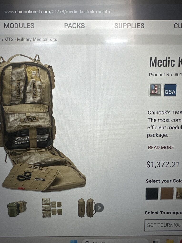 VenmoRetails for over $1000. This is a military grade medical kit perfect for emergency preparation / doomsday / zombie apocalypse. All in a molle style coyote tan backpack.