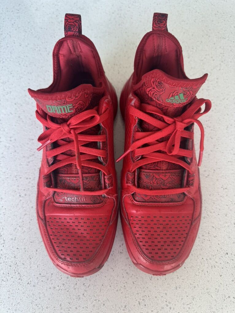 ApplePayAdidas Damian Lillard 1 Rose Florist City Men’s US Size 5 1/2 Scarlet/Core Black