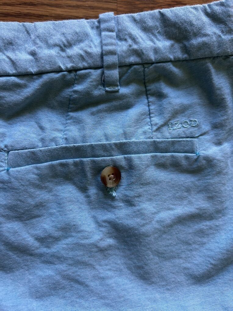 VenmoLike new in light blue Searsucker type material men’s waist size 34 with a 9 inch inseam cotton shorts. Two side zipper pockets with two button down slit style pockets on the back. Clean smoke, free, no flaws, stains holes or defects. Cash or Venmo. Pick up from Alpine.