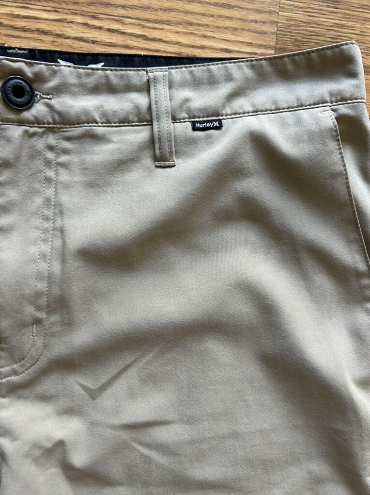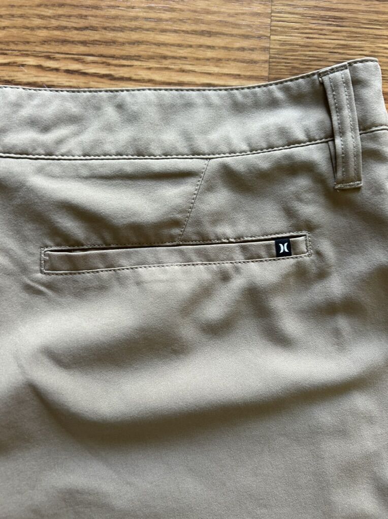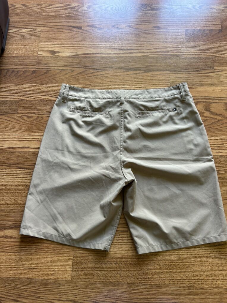 VenmoIn like new condition men’s waist size 34 9 inch inseam Hurley brand tan Golf style tech fabric shorts. Zipper closure, two pockets on the side and two slit pockets in the back.  no flaws, stains, holes, snags or defects.  clean smoke free home.  cash or Venmo. Pick up from Alpine.