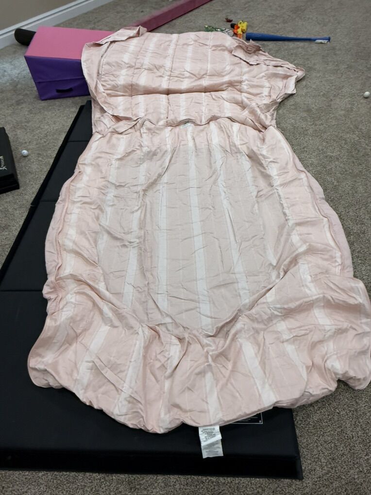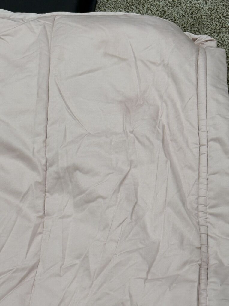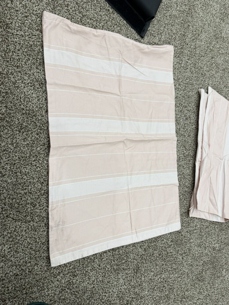 Has 2 shams and 2 cases one of the cases has a few holes and dirt stains. Faint lotion type shadow spot at very bottom of the top piece. Minor. Item number 20Aug
