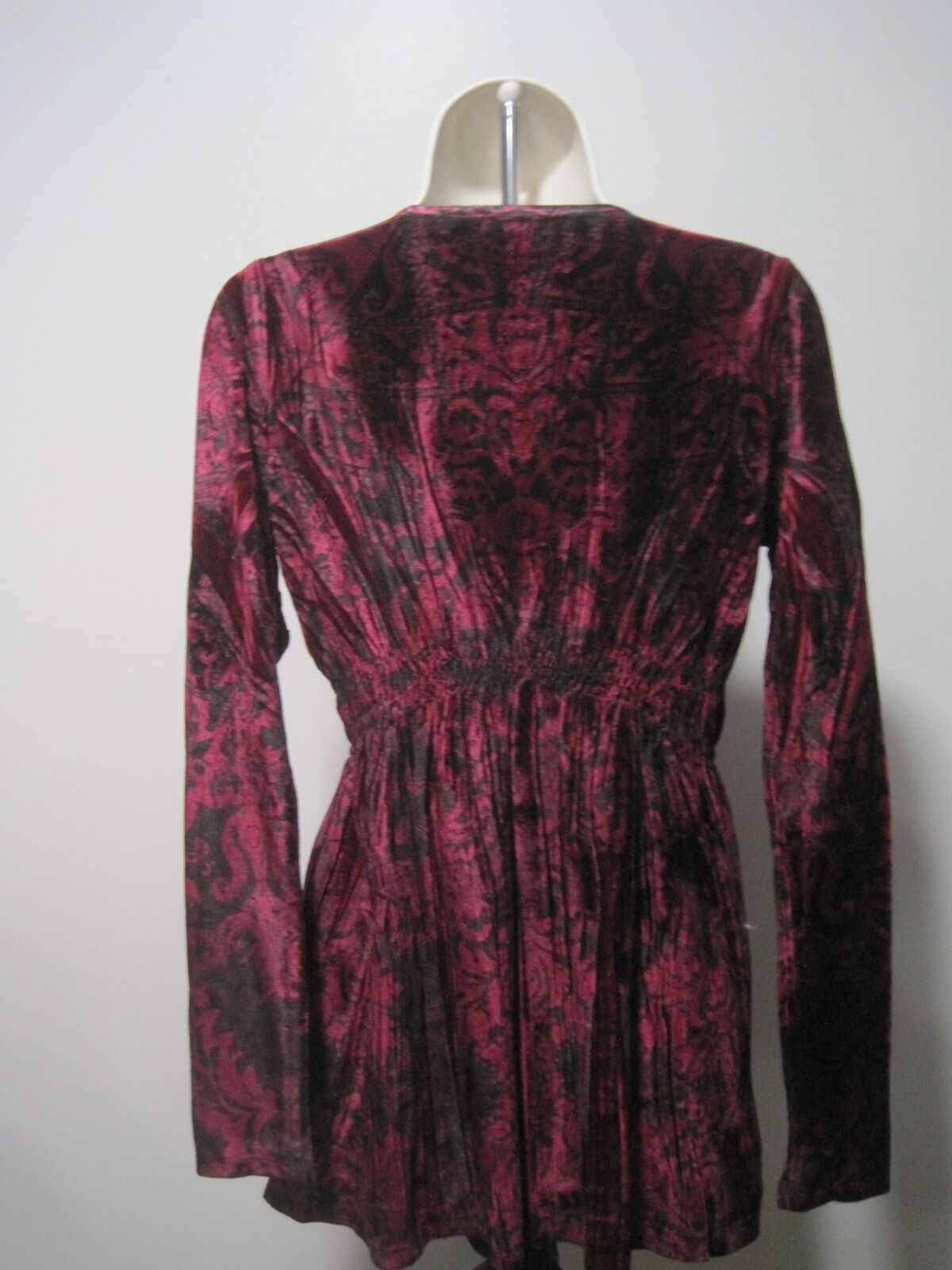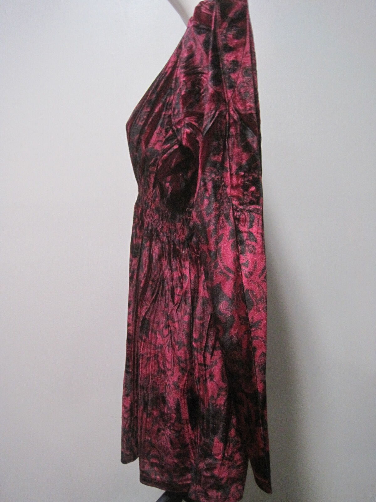 The Apt. 9 Red & Black Velvet V-Neck Long Sleeve Mini Dress in size Medium is a stylish and versatile option for women looking for a chic outfit. Made from a blend of polyester and spandex, this velvet fabric dress features a flattering V-neckline and a comfortable pullover closure. With its short length and long sleeves, it is perfect for various occasions such as travel, parties, or casual wear during the fall, winter, and spring seasons. The bold red color adds a touch of flair to the dress, making it a fantastic addition to any wardrobe.
