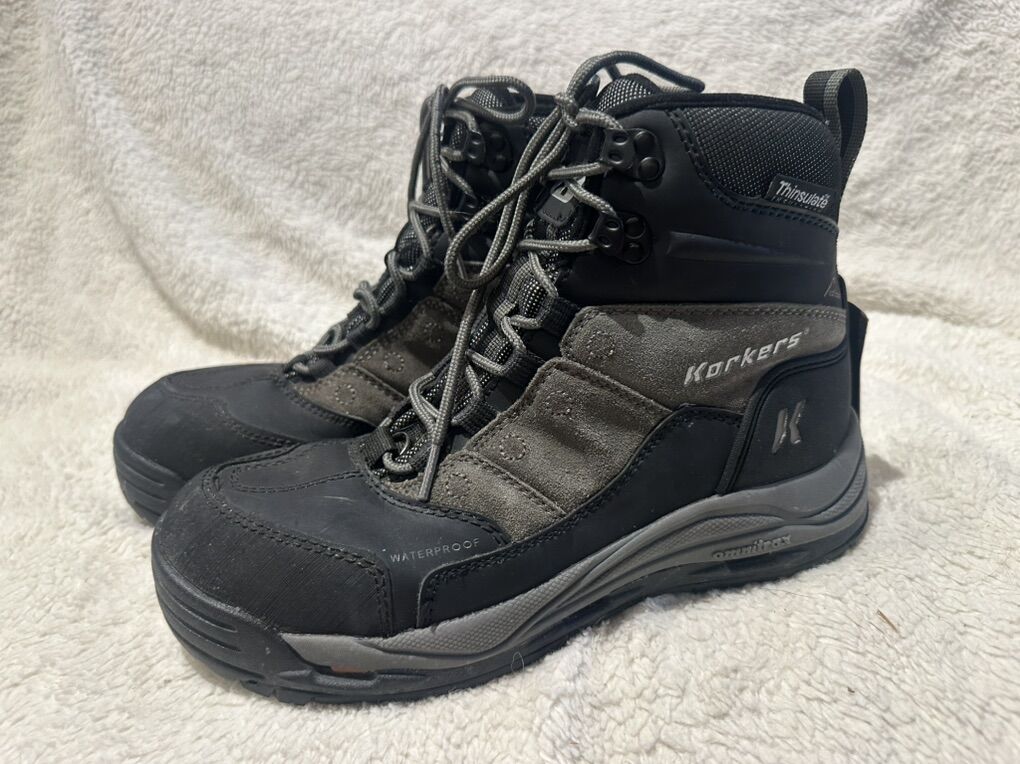 Korkers men’s size 9 or EU 42 storm Jak black and gray waterproof fishing boots in barely used condition with 200 g of insulation. See photos for details. I take cash or Venmo, but cash is preferred. Text is best. 801-201-4446. Check out my other ad for additional sizes and styles.