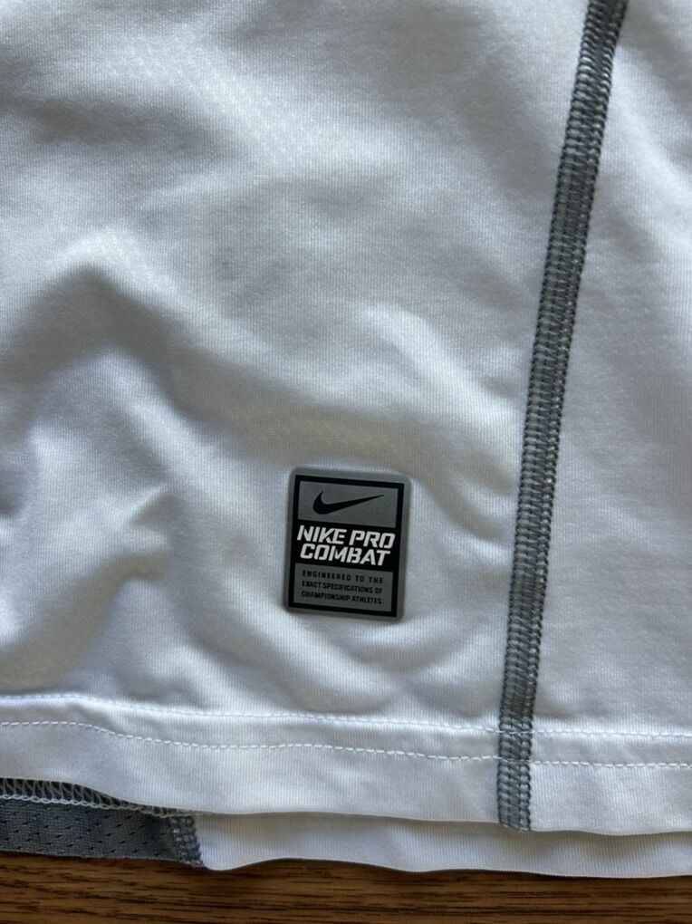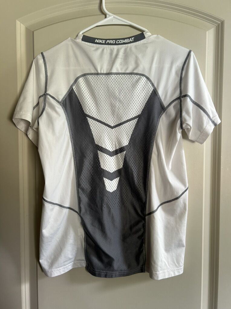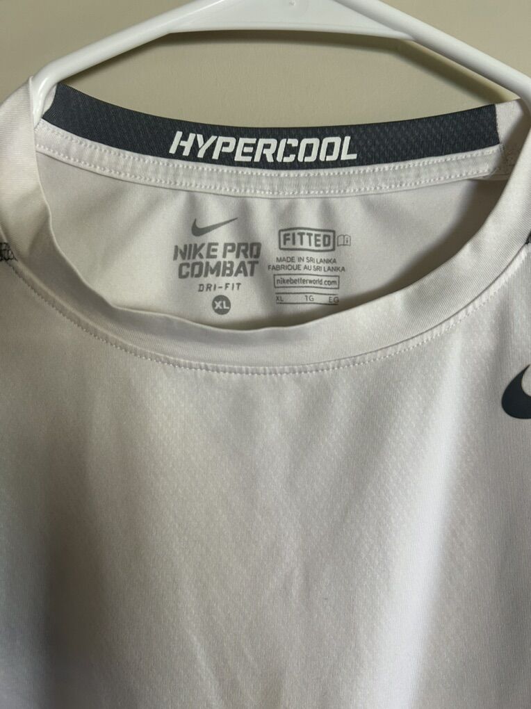 VenmoLike new men’s Nike pro combat hyper cool dry fit fitted short sleeve workout shirt. White with gray accents. Clean. Smoke free. No stains, flaws, snags or defects. Cash or Venmo. Pick up from Alpine.