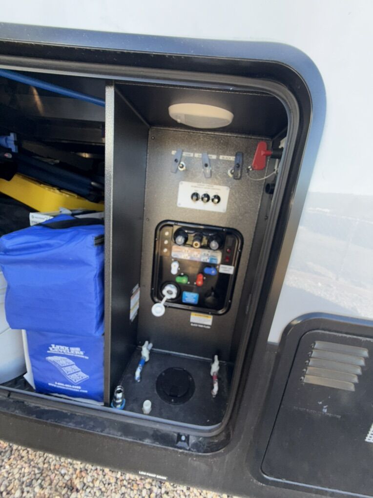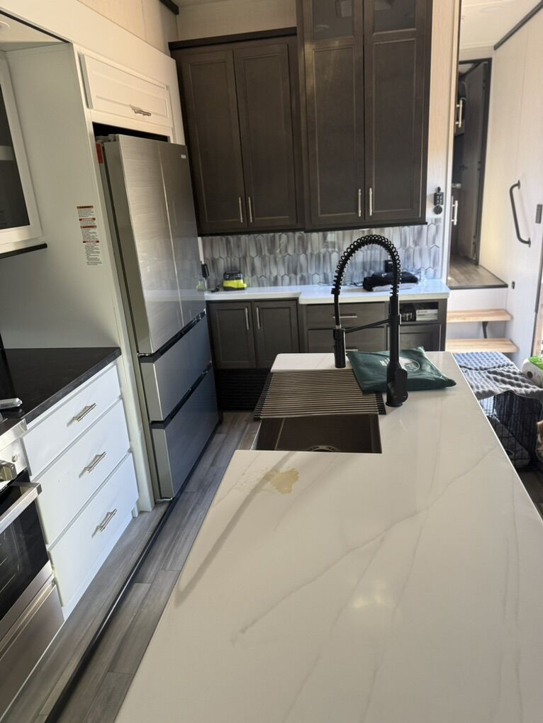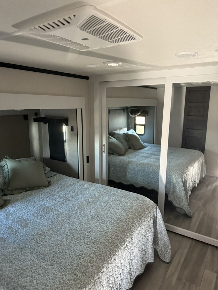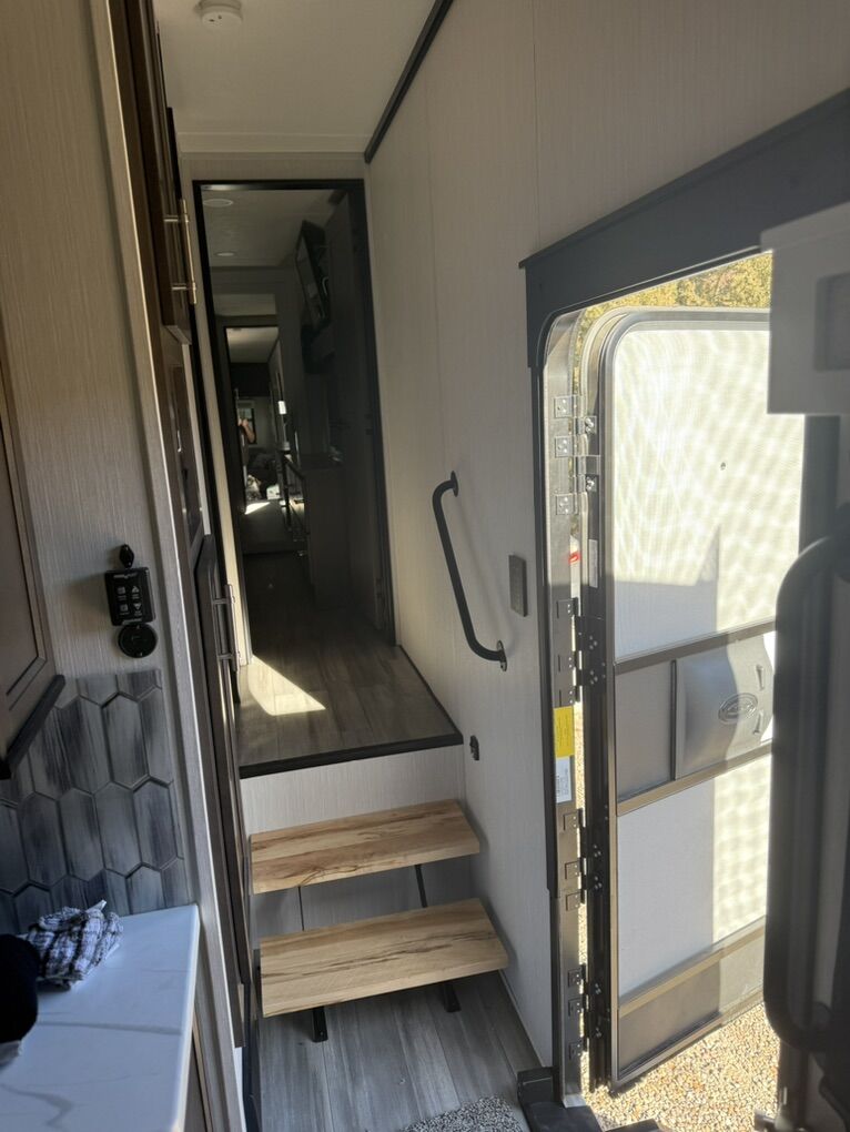 Forest River Cedar Creek fifth wheel 360RL highlights: Rear Living Area Kitchen Island Fireplace Dual Sink Vanity Front Private Bedroom You can bring a guest or two to join in on the fun with this fifth wheel! The rear living area has a hide-a-bed sofa and power theater seating across from an entertainment center with a fireplace and a Murphy pantry hidden behind. The chef can prepare their best meals with the kitchen island and your guests will love the fold-down breakfast counter. The full bathroom has a spacious shower with a seat plus a dual sink vanity for convenience. The king bed slide in the front private bedroom welcomes you to enjoy a good night's rest and the front wardrobe has storage shelves and washer/dryer prep if you want the option to wash clothes while you're away from home! With any Cedar Creek fifth wheel by Forest River, you will find a quality-built RV with your comfort in mind! The all-aluminum super structure on 16 centers or less will provide a solid foundation to your fifth wheel, and the VIXENITE waterproof composite slide floors will hold up over years of use. Each model also includes black textured metal skirting, a TST tire pressure monitor system, and Cradlepoint Day 1 Wi-Fi connectivity so you can stay connected while you camp. A Lippert Gen 3 Leveling System makes setting up camp easier than ever, and the 200 watt solar panel means you can enjoy some off-grid capabilities. Head inside to find upgraded solid surface countertops, floating steps to the upper deck, USB ports, and updated backsplash that is modern and eye-catching. You will also enjoy new in-wall storage in the bedroom for books or personal belongings, a new V-Flo cordless vacuum for easy clean up, a redesigned shower with LED lighting and a fold-down bench, and many more luxuries! SleeperSize: King