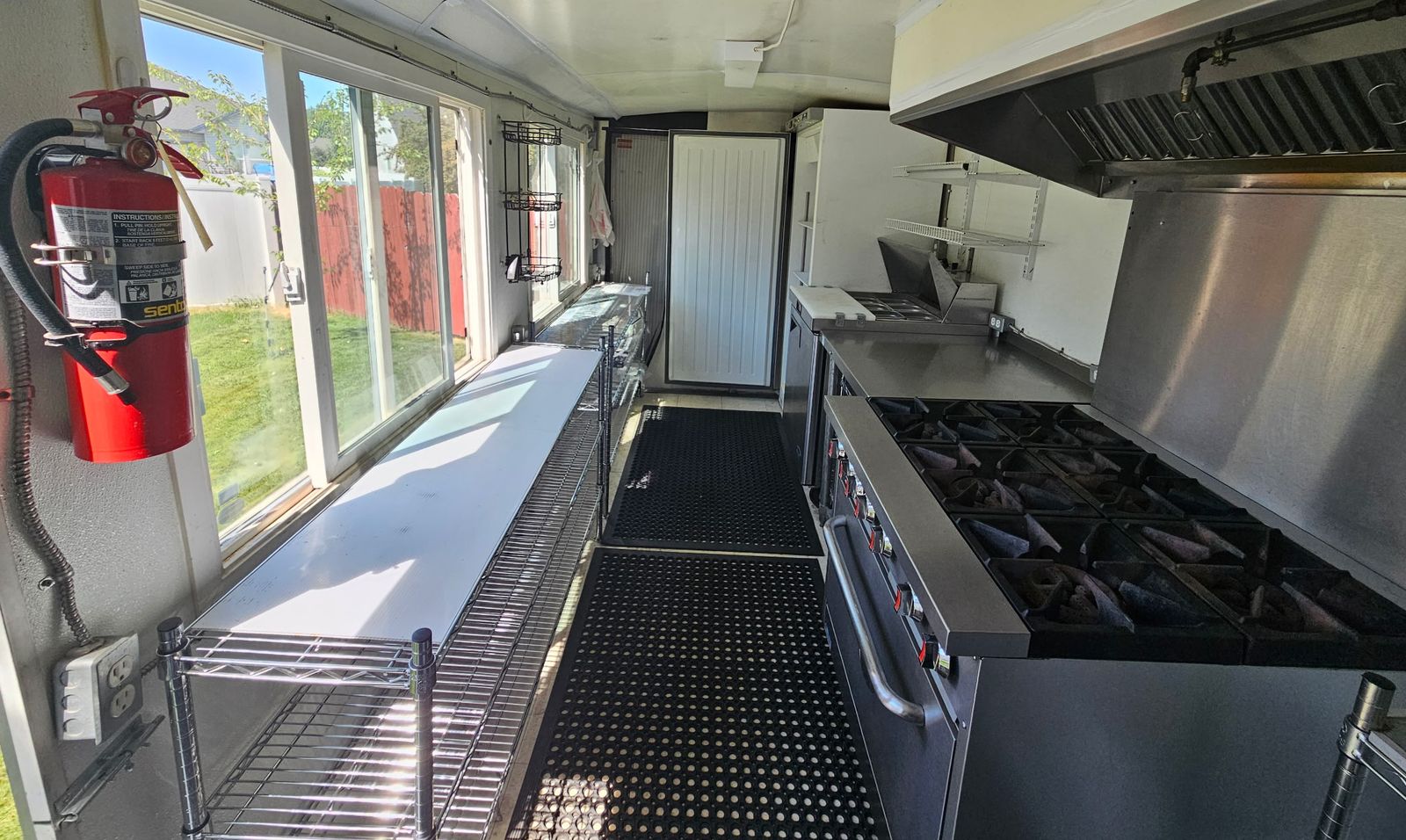 Venmo2017 Food Trailer for sale. Double axle, 16 ft, A/C, 6 burner stove & oven, full size refrigerator/freezer, prep table, three compartment sink w/hand washing station, hood w/fire suppresion.