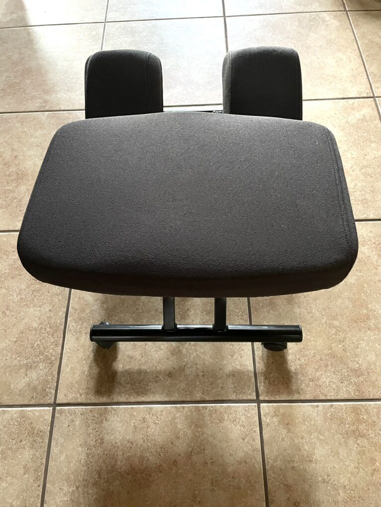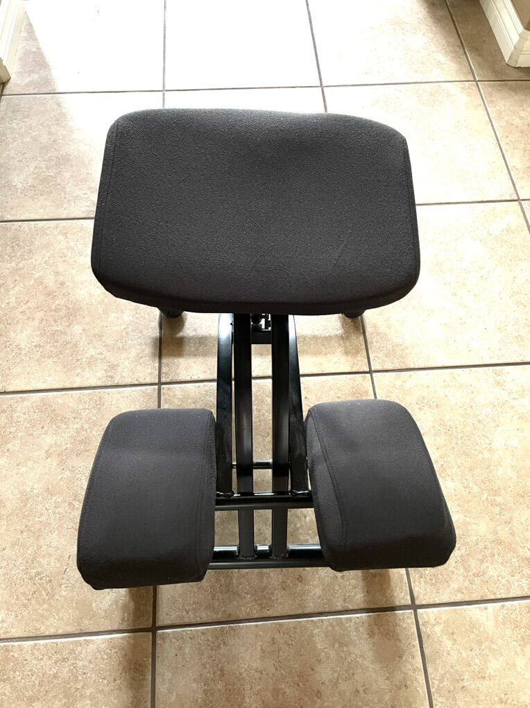 ApplePayErgonomic Kneeling Chair, Adjustable Stool for Home and Office - Improve Your Posture. Adjustable medal frame with fabric cushions, steady with wheels, in black.
