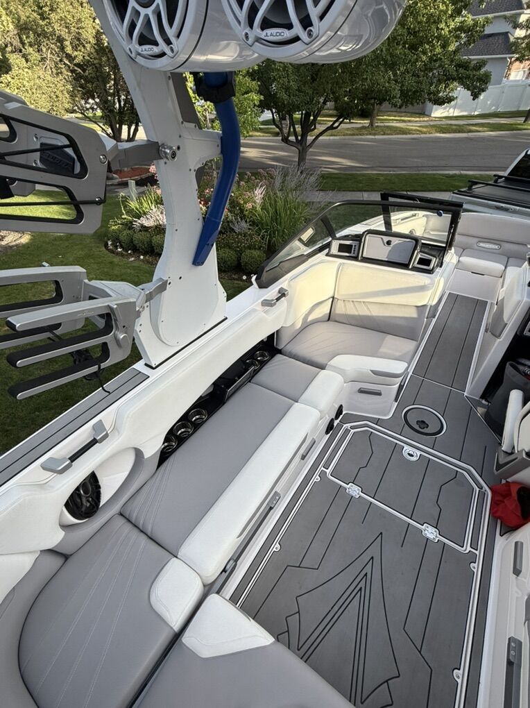 Some of the features: Power tower Autowake 575 HP Raptor engine Stern thrusters Excellent surf wave 4 surf racks Large Bimini All hard ballast, no ballast bags (lots of storage Surfboard locker Power captains chair Upgraded sound system (way better than my new Malibu LSV) Lots more….