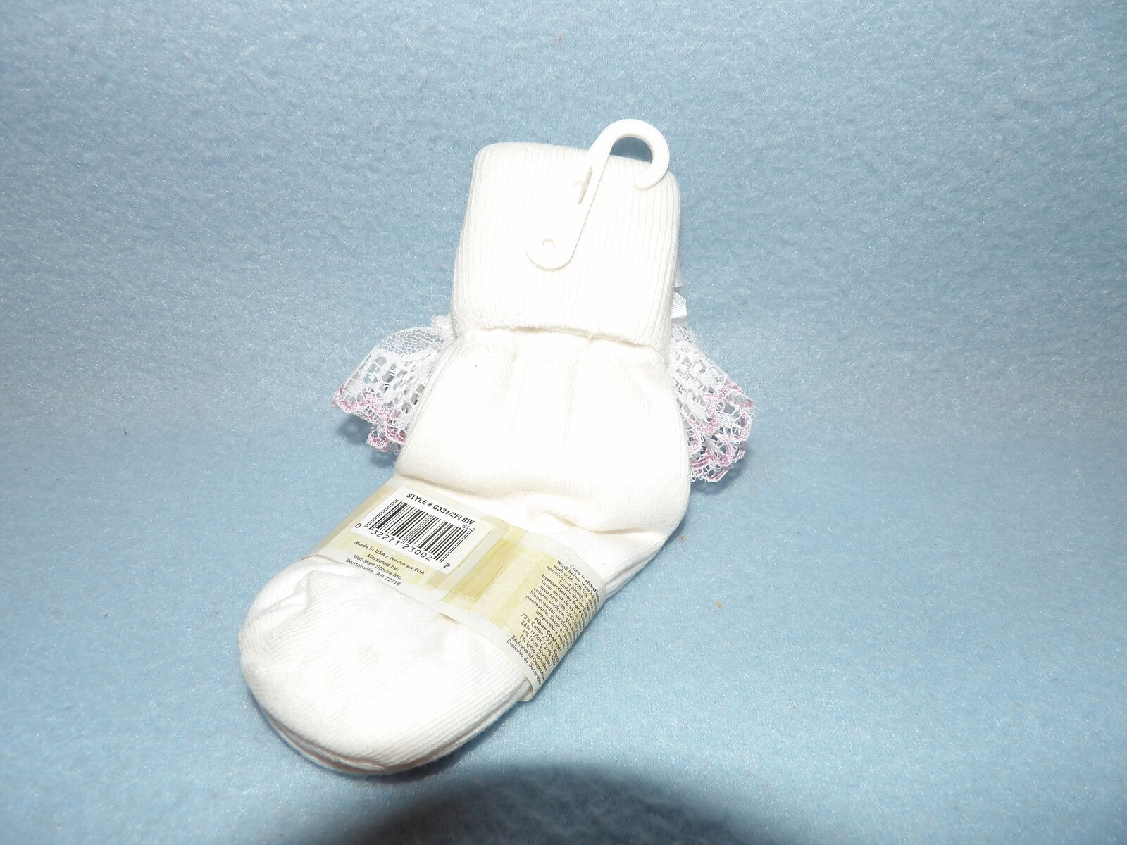 These pretty socks will dress up any outfit and look adorable. One pair as the white and pink lace. The other pair is without lace. New with tags.