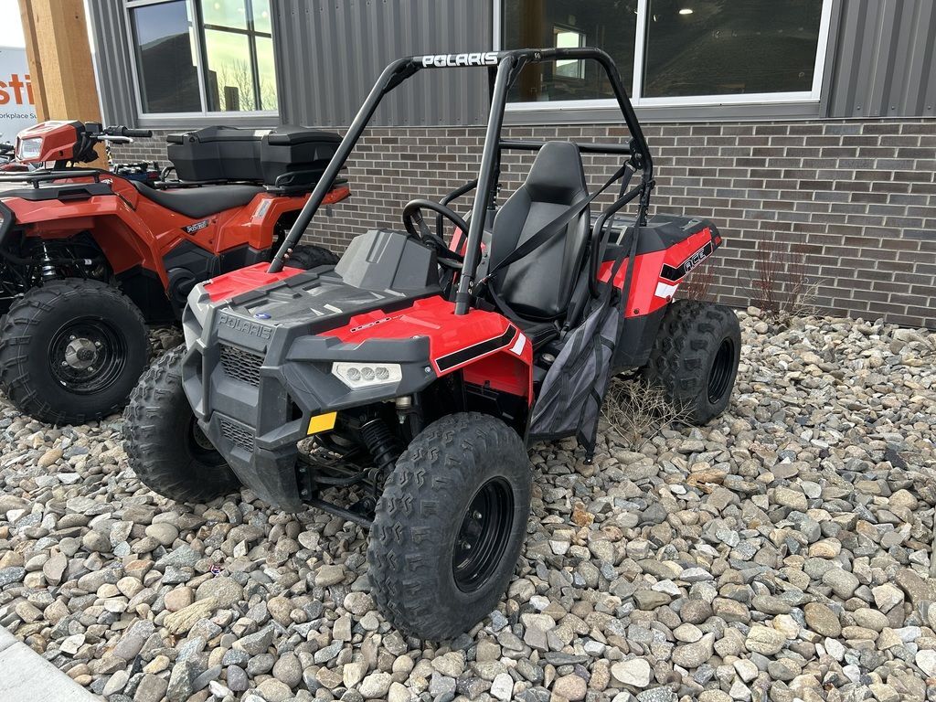 2019 Polaris® ACE® 150 EFIINDUSTRY'S FIRST SINGLE-SEAT YOUTH MODELIF THEY LIKE TO RIDE, THEY'LL LOVE TO DRIVEAs the industry's first single seat youth model, the Polaris ACE® 150 EFI is designed to give kids ten years and older the joy of driving with adult supervision while providing safety features parents will love. MAKING IT EASY FOR YOUNG RIDERS TO HIT THE TRAILSAs industry's first single seat youth model, the Polaris ACE® 150 EFI is designed to give kids ten years and older the joy of driving with adult supervision while providing safety features parents will love.Features may include:Standard Safety FeaturesSafety is the number one priority when it comes to kids enjoying off-road adventures. The Polaris ACE 150 comes standard with one youth helmet, LED daytime running lights, seat belt, safety nets, safety whip flag, speed limiting adjuster, and a training DVD.Adjustable Speed Limiting & ErgonomicsTilt steering, a comfortable bucket seat for off-road ergonomics, and 5.7" of seat sliding adjustability for growing kids. Parents can also control vehicle speed and adjust with the skill level of the young drivers using the 4-Mode electronic speed limiting. Choose between: - 10 mph (16km/h) - 15 mph (24 km/h) - 22 mph (35 km/h) - 29 mph (47 km/h)Long-Travel Front & Rear SuspensionBumps in the yard and on the trail are soaked up by 5" of suspension travel up front and 6" of travel in the back. Plus a full 9" of ground clearance gives the Polaris ACE 150, and your young driver, the ability to navigate off-road obstacles.Electronic Fuel Injected (EFI) 149CC EngineThe 149cc engine delivers a fun ride, consistent starting, improved idle quality, and a crisp linear throttle response. Polaris ACE 150 comes standard with electric start and automotive style controls, making it easy for young drivers to hit the trail. Ages 10+Electronic Fuel InjectionParent Adjustable Speed LimitingSeat Belt & Safety NetsProtective CageTilt SteeringAdjustable Seat9” Ground ClearanceComes Standard with 1 Youth Helmet and Training DVD