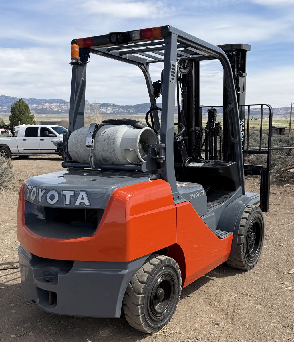 Toyota 8FGU30 8 series 6,000 lbs capacity Hours: 5,000 - 9,000 Triple stage masts 187” max lift height Side shifter assembly (LPG) Propane powered Automatic transmission Recently serviced (New fluids & filters) New paint & Good seat (4) New Solid Pneumatic tires (Indoor/Outdoor Use)
