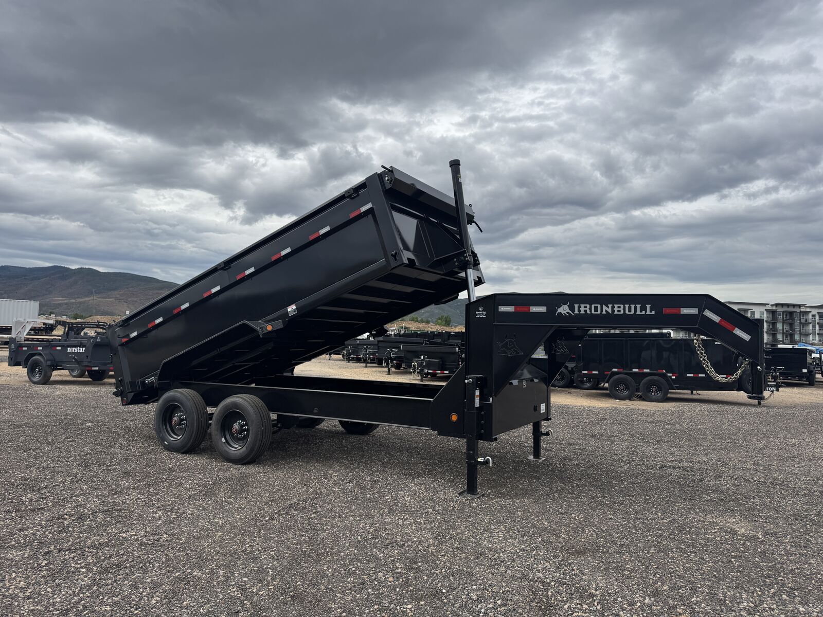 The Iron Bull DHG Dump Trailer Beast Models—engineered for maximum performance and built to tackle the toughest jobs with ease! These heavy-duty dump trailers are designed to work as hard as you do, featuring a robust a 12" I-Beam frame, neck and risers, up to 22k of GVWR and 2 - 10k spring axles, these top tier components come together with the most rugged construction on the market to deliver a dump trailer like no other!