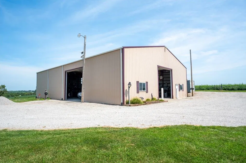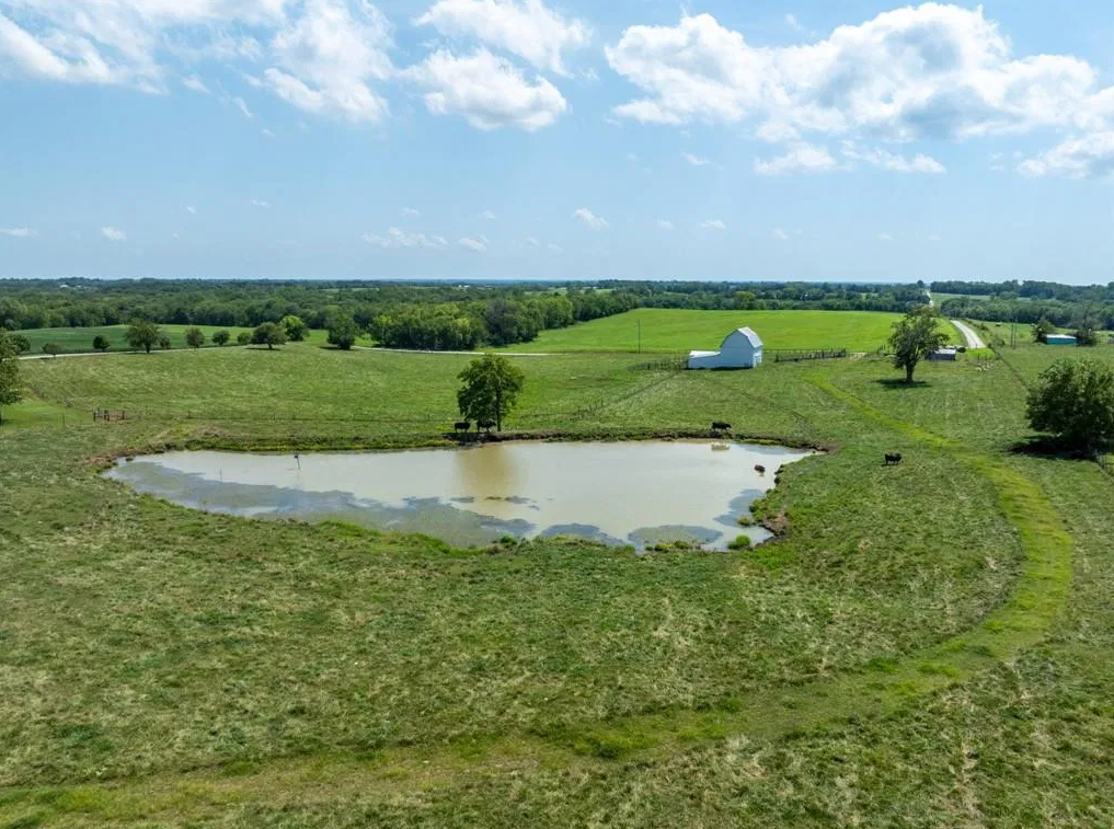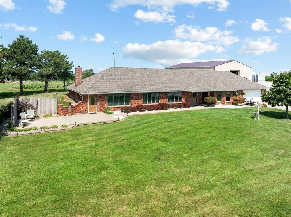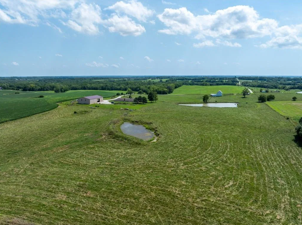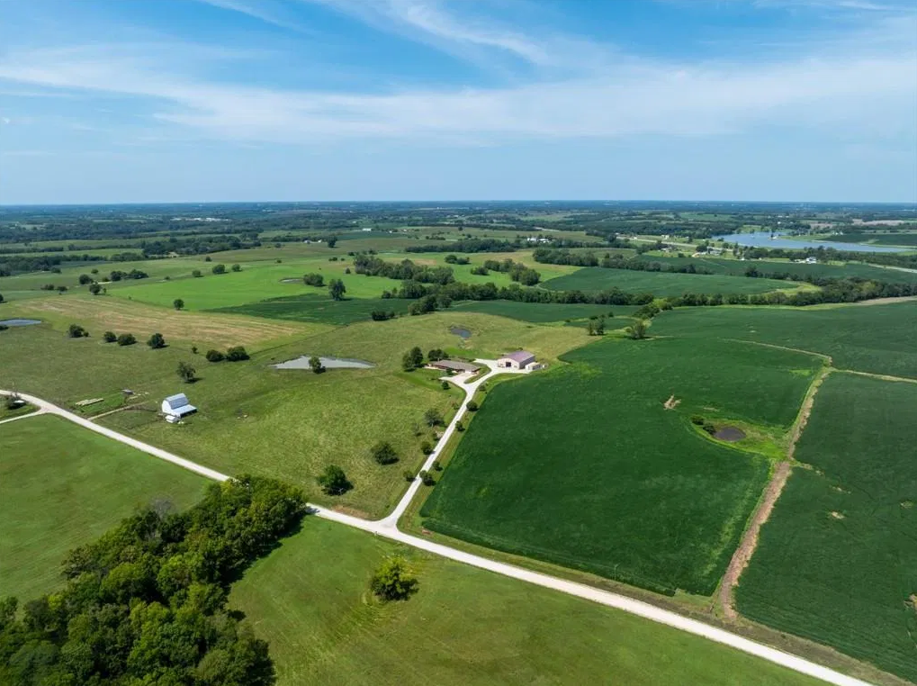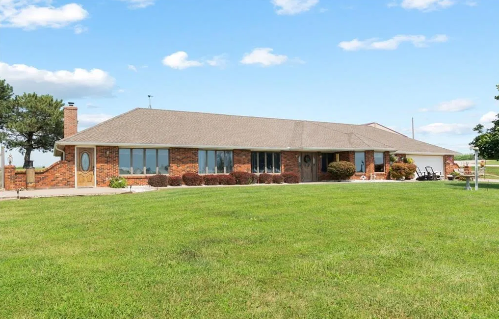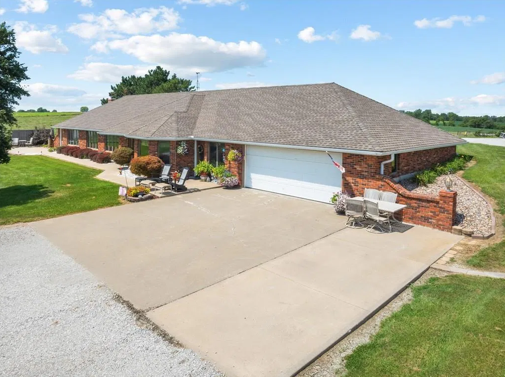 This all-brick earth contact home sits 1/2 mile off blacktop on gravel, offering both privacy and convenience. The property features 37 acres with three ponds, barns, lean-too's, and good fencing throughout. Inside, the home offers 3 spacious bedrooms, 2 full bathrooms, and 2 half bathrooms. A bonus room at the entry provides flexible space for an office, salon, bookkeeping, or other uses. The kitchen and dining area flow into a vaulted living room with a wood-burning fireplace, creating a warm and inviting atmosphere. A second fireplace adds additional charm in the primary bedroom. The bedrooms are generously sized with walk-in closets. Practical features include geothermal heating and cooling, nice kitchen with pull out drawers and large pantry, a large mudroom, and an oversized 2-car garage with attic storage. Outside, a 56' x 83' shop with tall 14' overhead electric doors, concrete floors provides excellent space for equipment or hobbies. Rural water is in place. This well-maintained property is ready to meet a variety of needs, from farming to recreation. Schedule a showing today—opportunities like this don't come often!