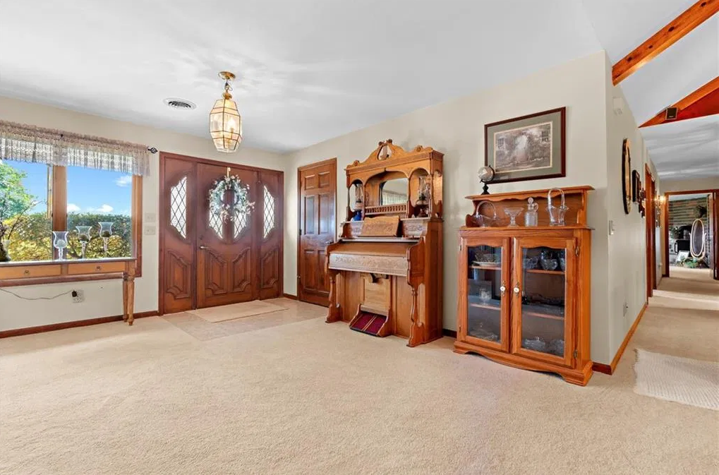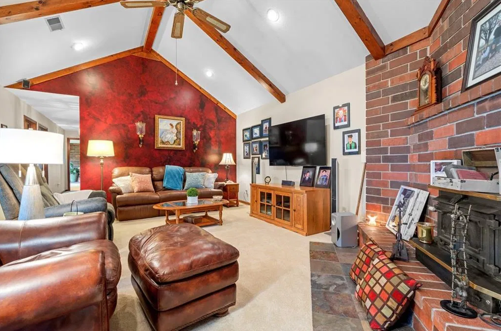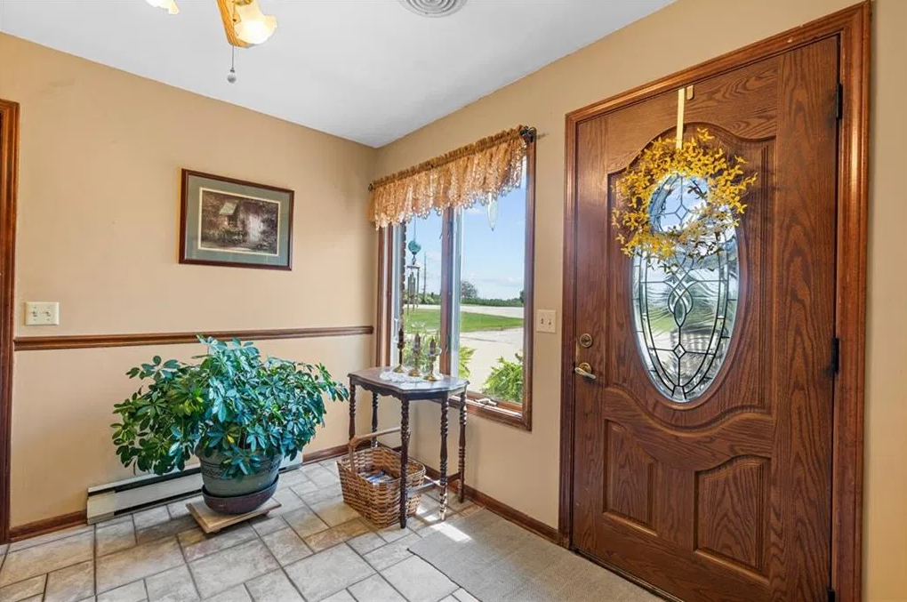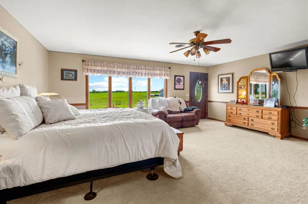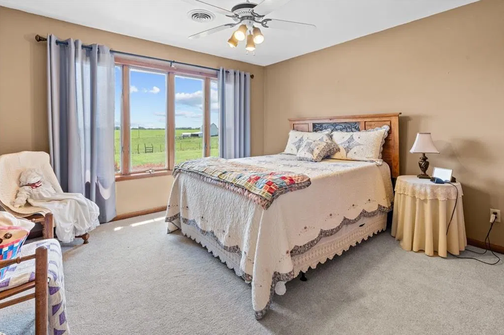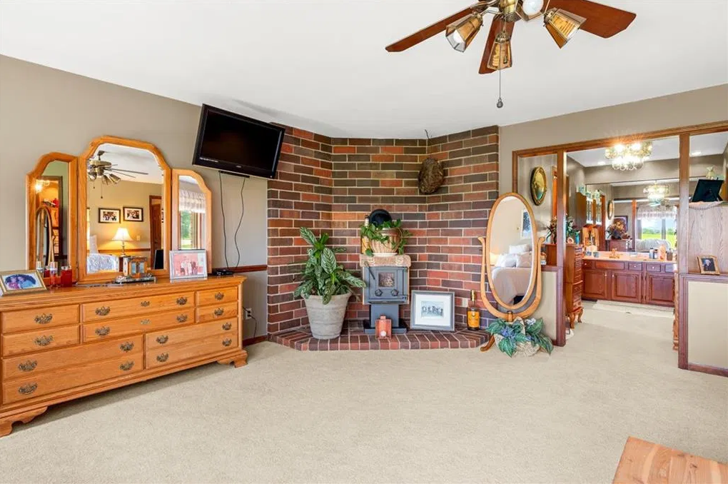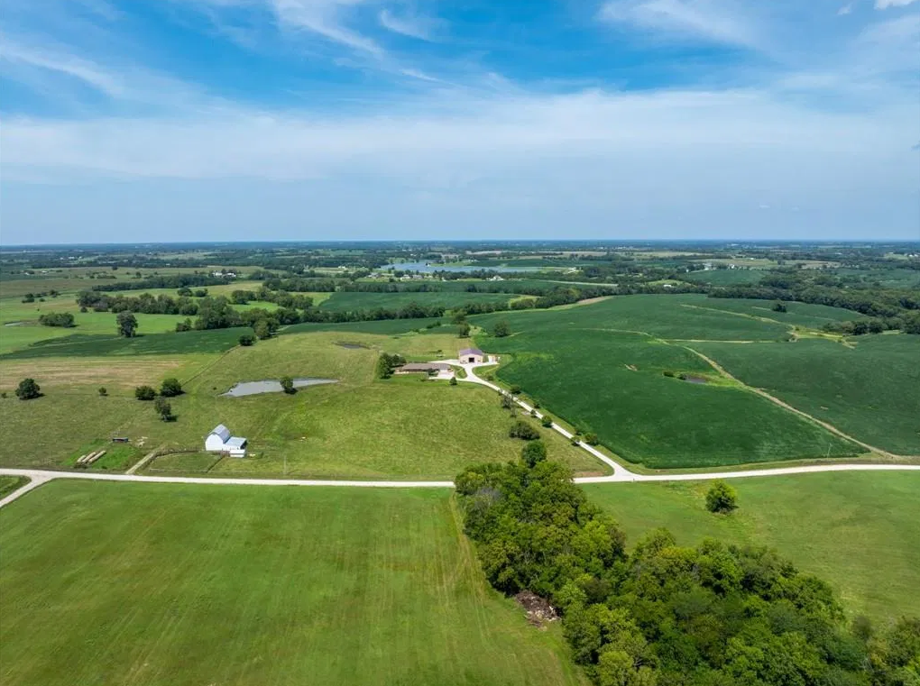 This all-brick earth contact home sits 1/2 mile off blacktop on gravel, offering both privacy and convenience. The property features 37 acres with three ponds, barns, lean-too's, and good fencing throughout. Inside, the home offers 3 spacious bedrooms, 2 full bathrooms, and 2 half bathrooms. A bonus room at the entry provides flexible space for an office, salon, bookkeeping, or other uses. The kitchen and dining area flow into a vaulted living room with a wood-burning fireplace, creating a warm and inviting atmosphere. A second fireplace adds additional charm in the primary bedroom. The bedrooms are generously sized with walk-in closets. Practical features include geothermal heating and cooling, nice kitchen with pull out drawers and large pantry, a large mudroom, and an oversized 2-car garage with attic storage. Outside, a 56' x 83' shop with tall 14' overhead electric doors, concrete floors provides excellent space for equipment or hobbies. Rural water is in place. This well-maintained property is ready to meet a variety of needs, from farming to recreation. Schedule a showing today—opportunities like this don't come often!