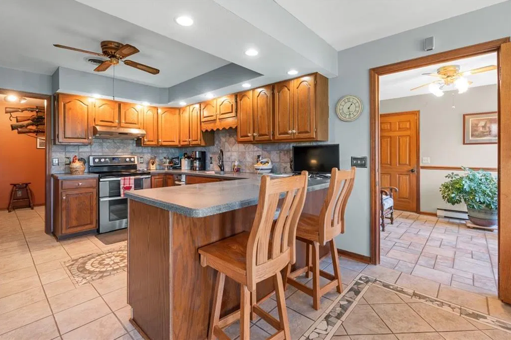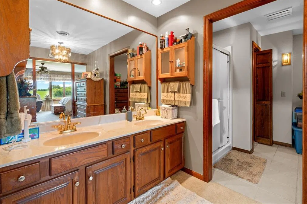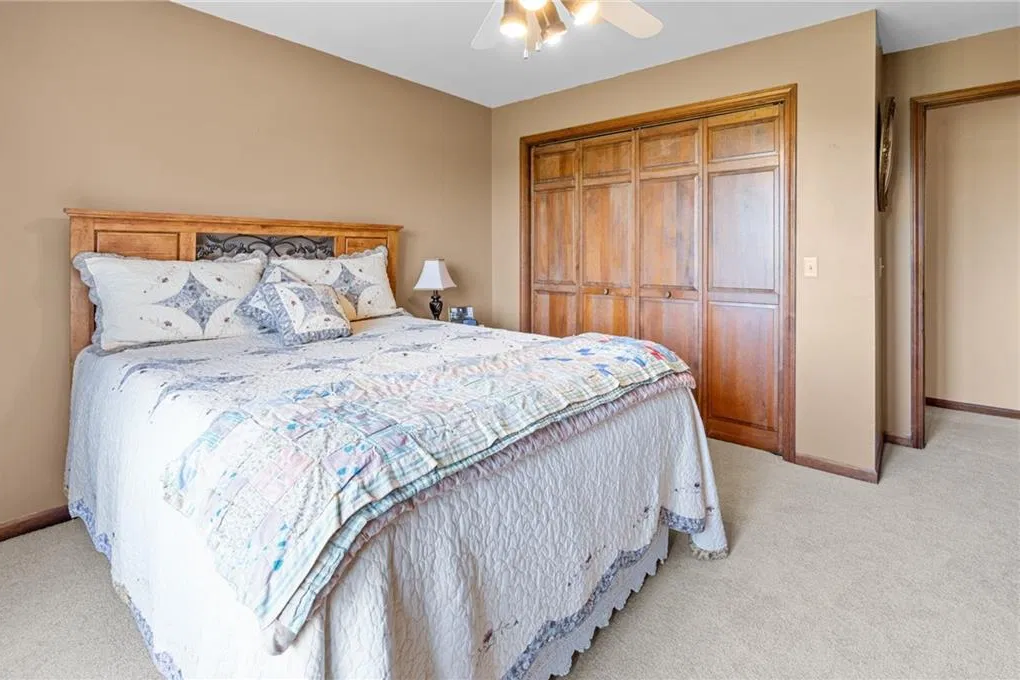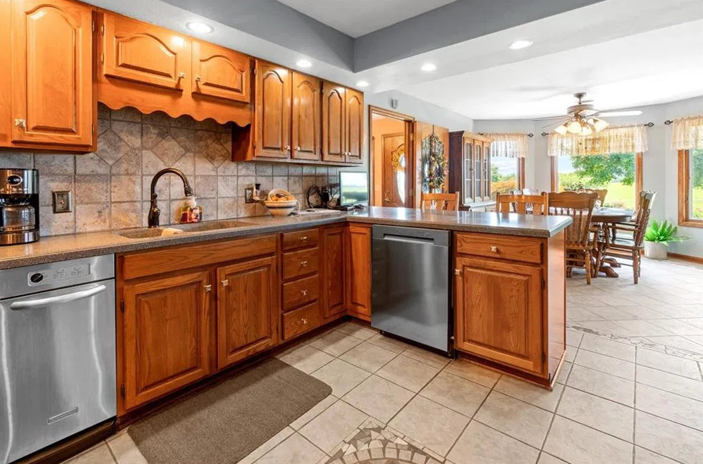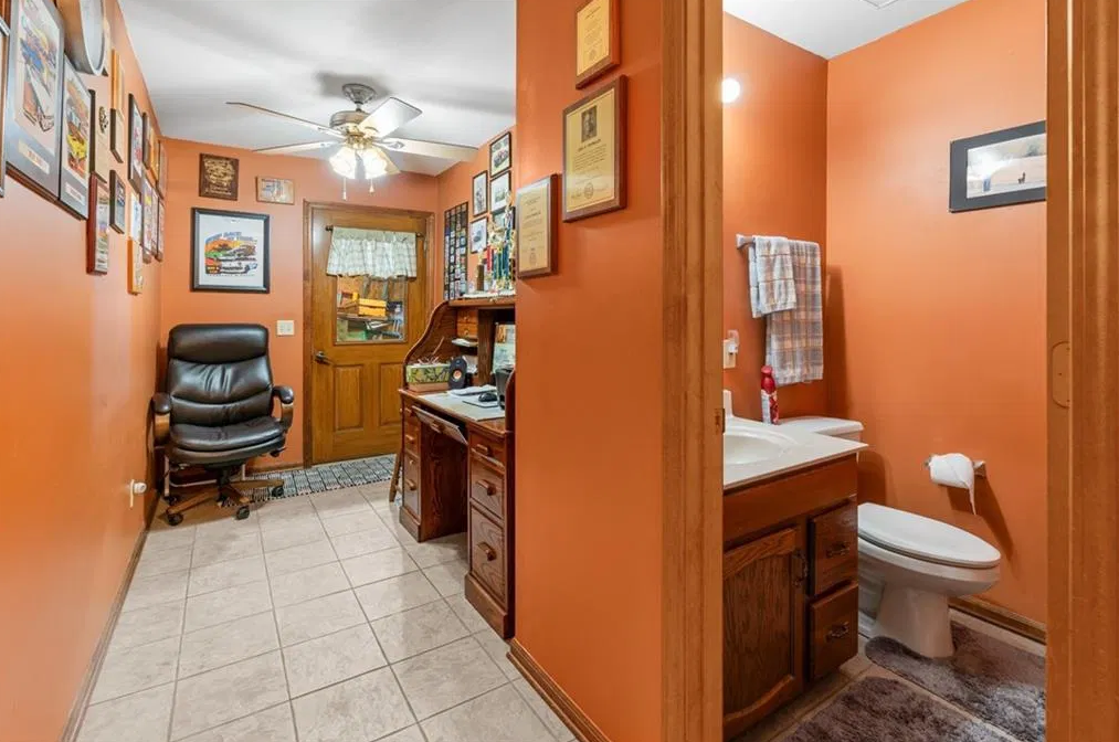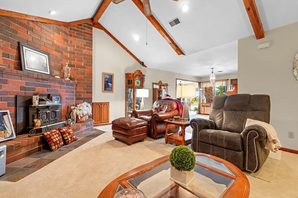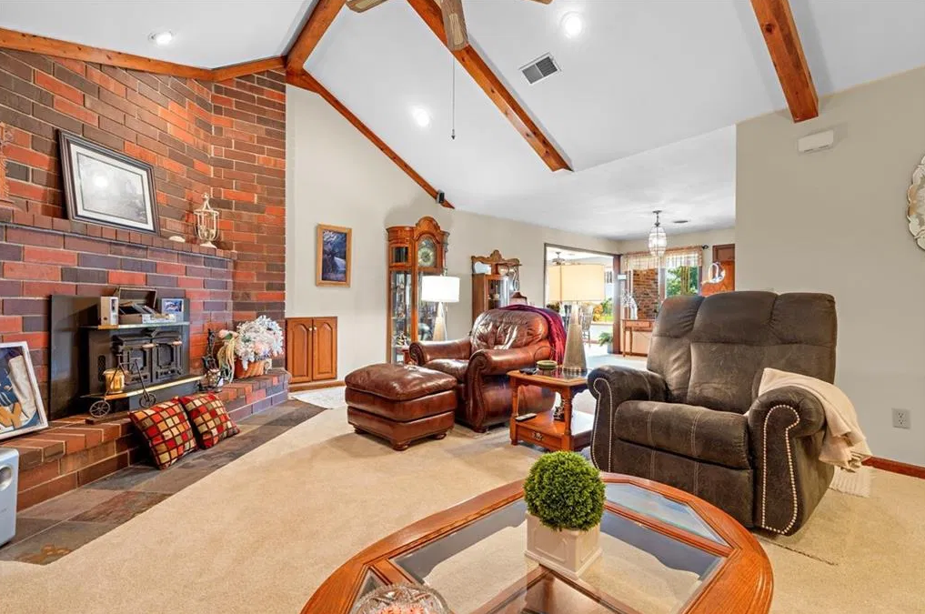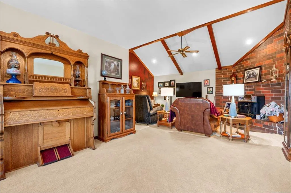 This all-brick earth contact home sits 1/2 mile off blacktop on gravel, offering both privacy and convenience. The property features 37 acres with three ponds, barns, lean-too's, and good fencing throughout. Inside, the home offers 3 spacious bedrooms, 2 full bathrooms, and 2 half bathrooms. A bonus room at the entry provides flexible space for an office, salon, bookkeeping, or other uses. The kitchen and dining area flow into a vaulted living room with a wood-burning fireplace, creating a warm and inviting atmosphere. A second fireplace adds additional charm in the primary bedroom. The bedrooms are generously sized with walk-in closets. Practical features include geothermal heating and cooling, nice kitchen with pull out drawers and large pantry, a large mudroom, and an oversized 2-car garage with attic storage. Outside, a 56' x 83' shop with tall 14' overhead electric doors, concrete floors provides excellent space for equipment or hobbies. Rural water is in place. This well-maintained property is ready to meet a variety of needs, from farming to recreation. Schedule a showing today—opportunities like this don't come often!