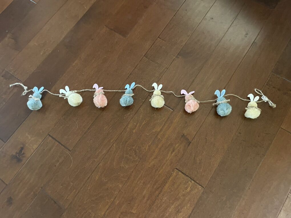 I have 3 new garlands that are ripe or twine with bristly bottle brush bunny rabbits on them. The rabbits are 4 1/2 inches tall. The tags say the garlands are 60 inches long but I measured one and it was 51 inches long. The bunnies are blue, pink and cream colored. The price tags show they were $26.95 each. I’m asking $6 each or take all 3 for $15. See my other ads for jewelry, artwork, home decor and more.