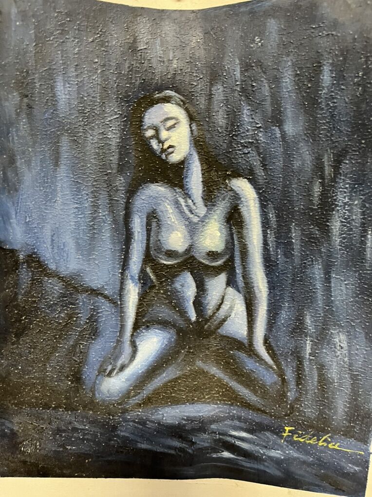 VenmoNaked blue woman mid century painting 107/8 x 131/8 long needs frame make me offer hand signed fidelice in lower right corner. Very rare!
