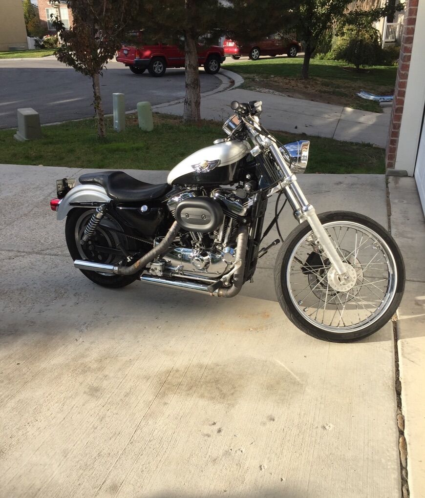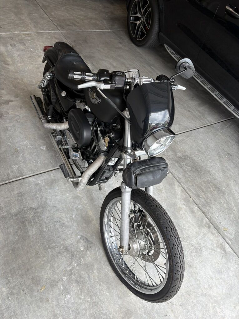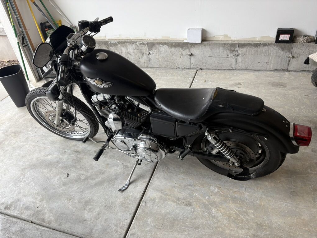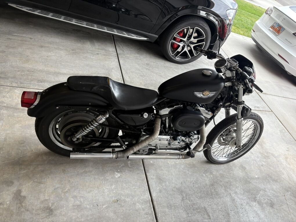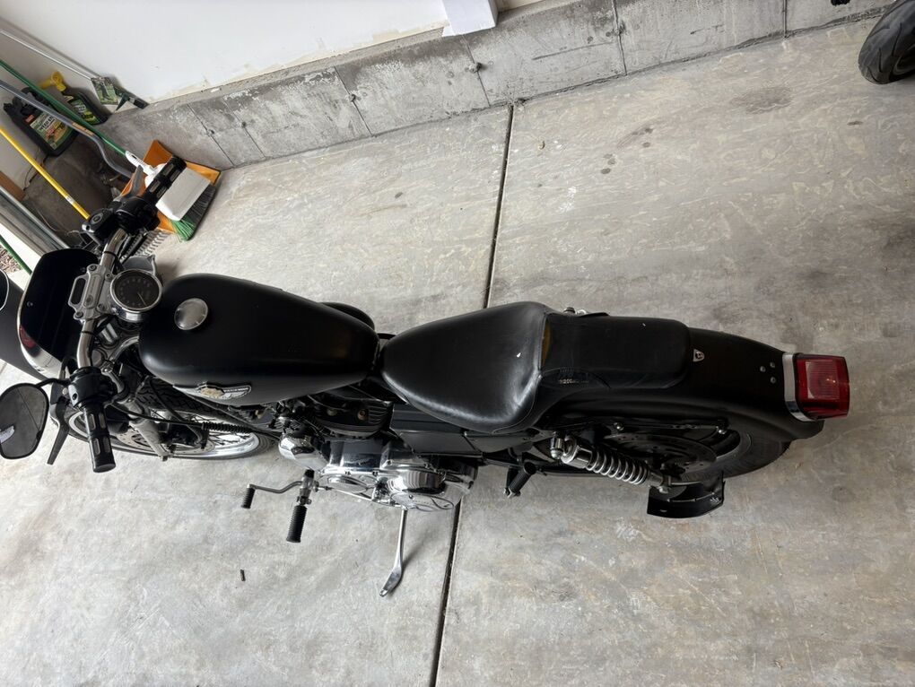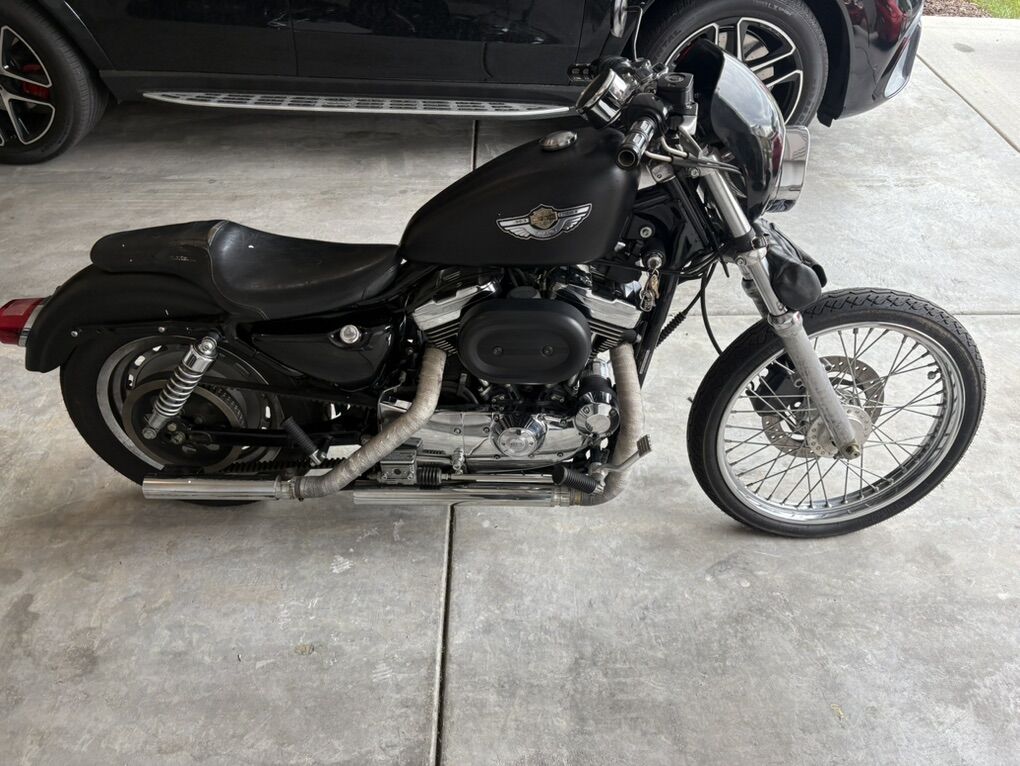 2003 XL 1200 Custom the bike is plasma dipped black right now just peel it off and it has factory paint job that shows 100th  anniversary. Unlike a wrap plastdip doesn’t peel the paint. Has brand new tires Perellis maybe 50 miles on it. New brakes as well roughly same mileage. New battery. Custom exhaust that’s wrapped sounds amazing! Brings front fender and extra seat. Make me an offer