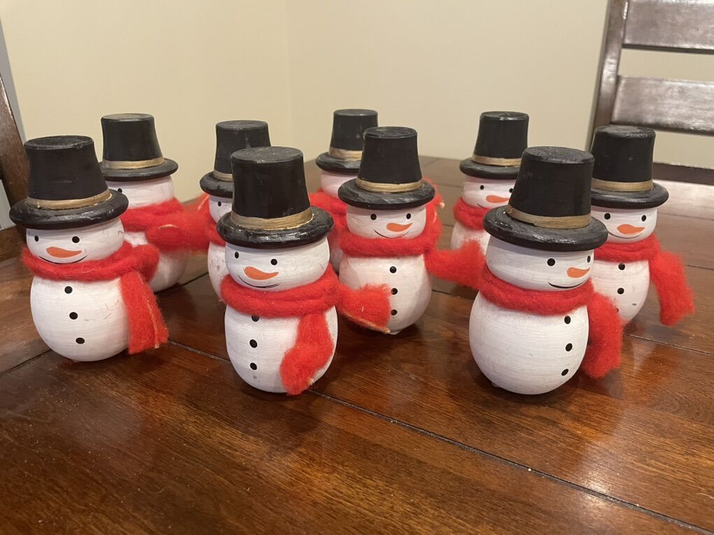 I have 9 new painted wood Nordic snowmen. They are just over 9 inches tall. They’re pretty rustic. You can see the wood through the paint. They have wool scarves. The price tags show they were originally $12.95 each. I’m asking just $10 for all of them together. See my other ads for jewelry, artwork, home decor and more.