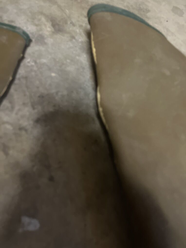 VenmoKnee Waiters have some cracks do not go through. I think they are 7.5 the are new but old they were only used a handful of times great for fishing. Cleaning ditches.