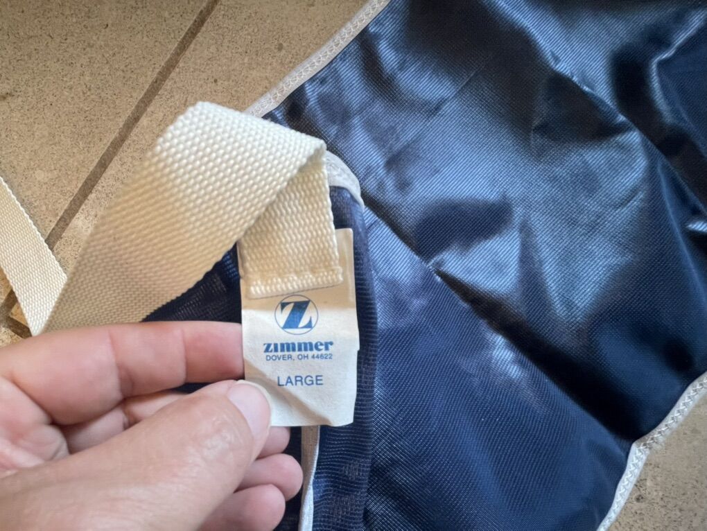 I have a Zimmer arm sling with adjustable straps. It is a size Large. See my other ads for jewelry, artwork, home decor and more.