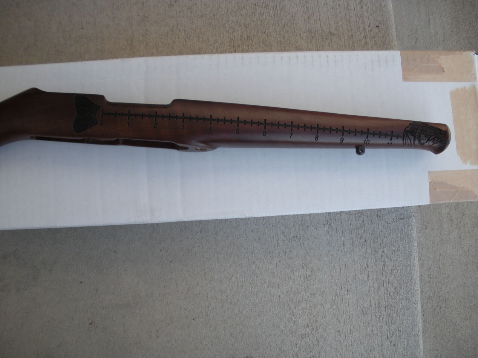 NEW WALNUT FISH THEMED STOCK , FITS A RUGER 10/22 WITH STANDARD BARREL. YOU CAN BUY THE THE SAME STOCK ON E-BAY FOR $200.00, BEFORE AN ADDITIONAL $15.00 FOR SHIPPING AND AN ADDITIONAL $15.00 IN SALES TAX, TOTAL OF $230.00. SAVE $100.00 AND BUY THIS ONE FOR $130.00, CASH ONLY.