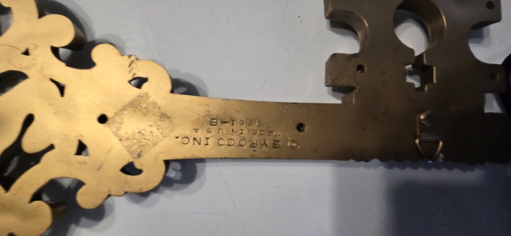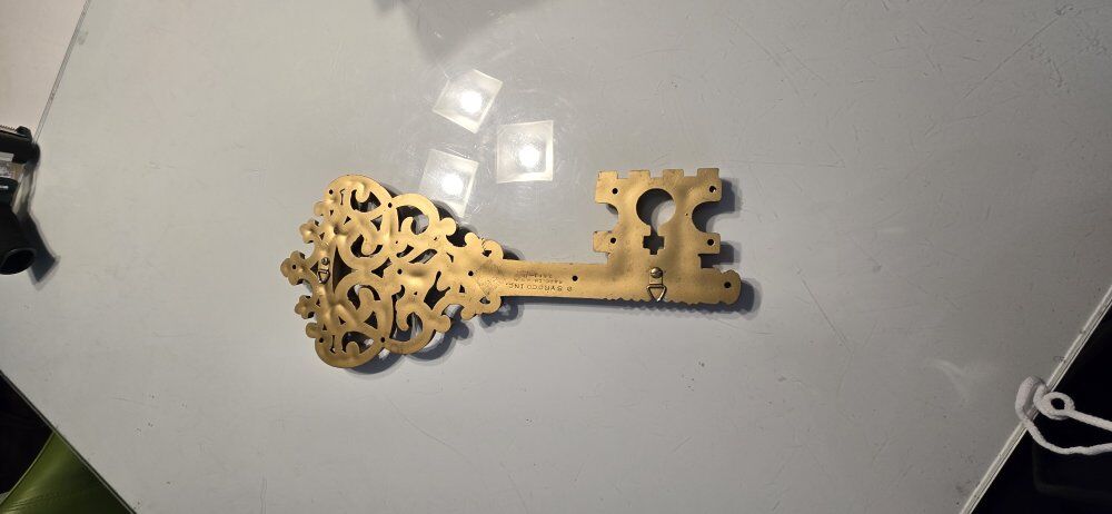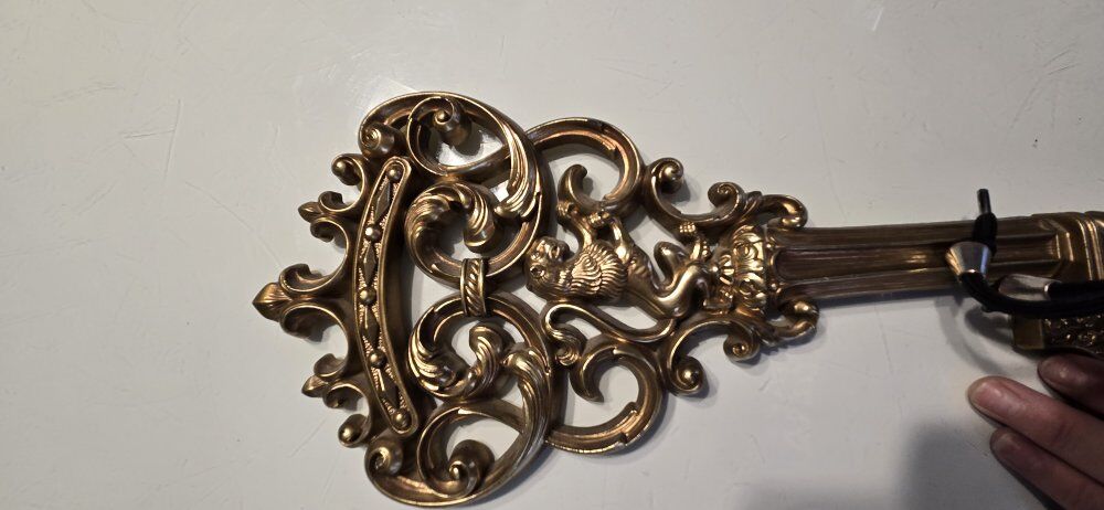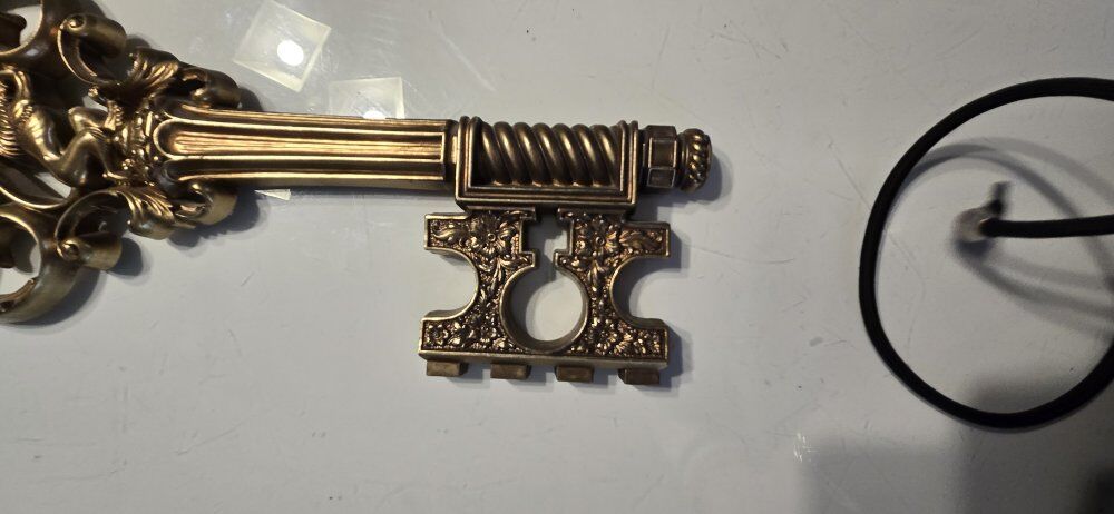 ZelleVintage MCM Syroco Gold Large Skeleton Key Lion Scroll Wall Hanging 18" tall 7.5" wide Spanish fork pick up venmo to hold fcfs