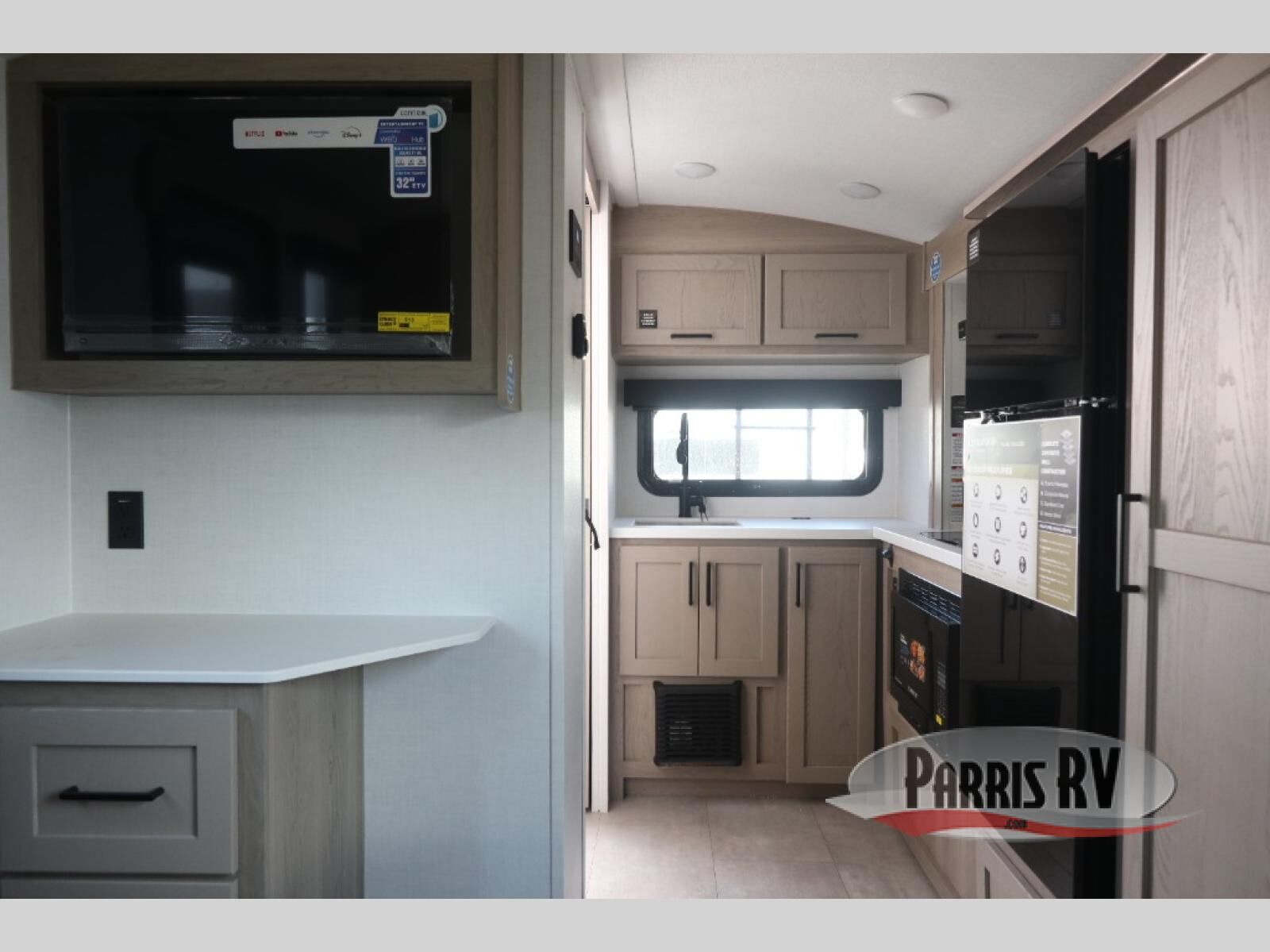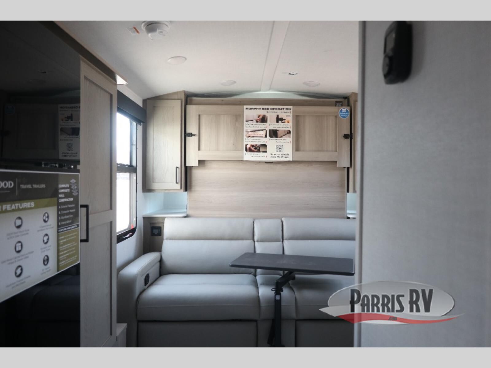 Pack your bags and head to your local state park in this travel trailer! You will love the extra space you have thanks to the kitchen slide out, and the jack knife sofa can fold away at night so you can sleep on the Murphy bed! This model includes a 32" 12V TV to keep you entertained on those rainy days, and the full bath will let you get cleaned up if you decide to hike despite the weather. There will be plenty of storage space for your belongings and gear since there is a pass-through storage and additional exterior storage, and don't overlook the exterior griddle for breakfast outdoors!
