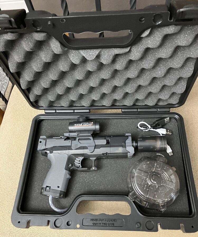 VenmoReal durable gun case.....Padded......gun shoots water 27 feet...see video! Asking $50 FIRM.....reduced from $75 Rare Contact John or Carolyn at (385) 221-0414