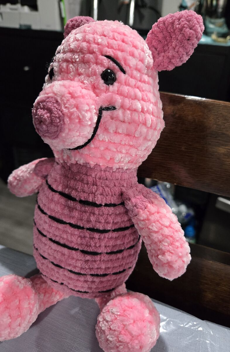 VenmoBrand new, handmade crochet piglet. 12 inches tall and very soft. Selling for $60 or send me an offer. Made with chenille yarn.