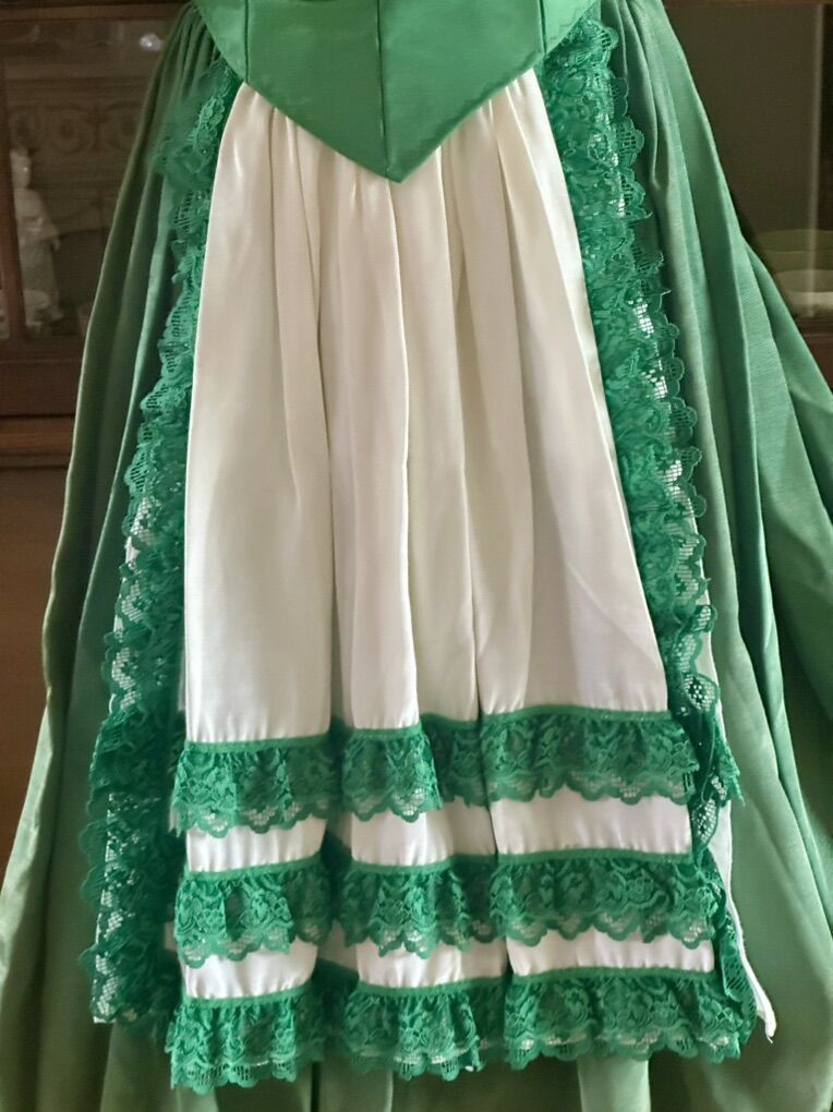 Has Velcro back instead of zipper. Corset on dress is very sturdy. Bust 30 and 29 (2 Velcro strips) waist 26, length 25 in excellent condition! Made with nice material