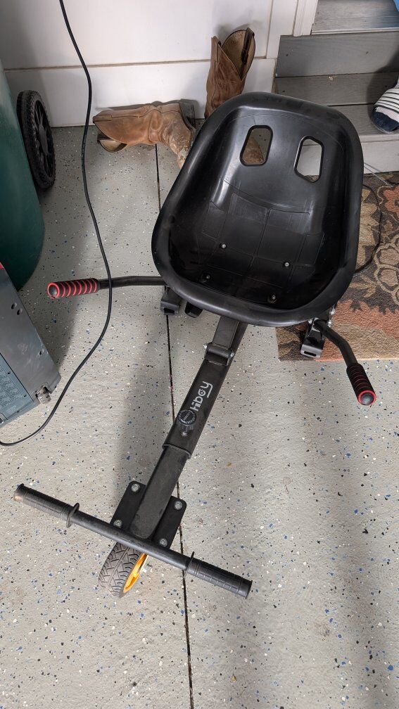 Zellesee pics. selling both together. we've used minimally. mainly indoors. just not getting much use out of it lately. time to move on to another home. looks like the hoover boards sell for around $100 new and go cart attachment for $50. we have the charging cord. one of the straps on the go cart attachment has been damaged and will need to be replaced.